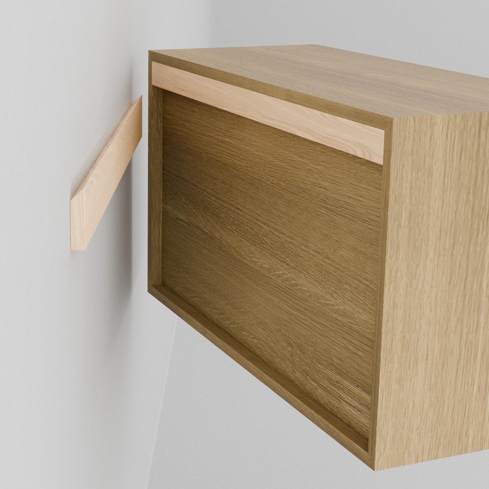 Each piece is fitted with an integrated solid wood French Cleat for easy install. All mounting hardware (included) is hidden behind the back for a clean, “floating” appearance.