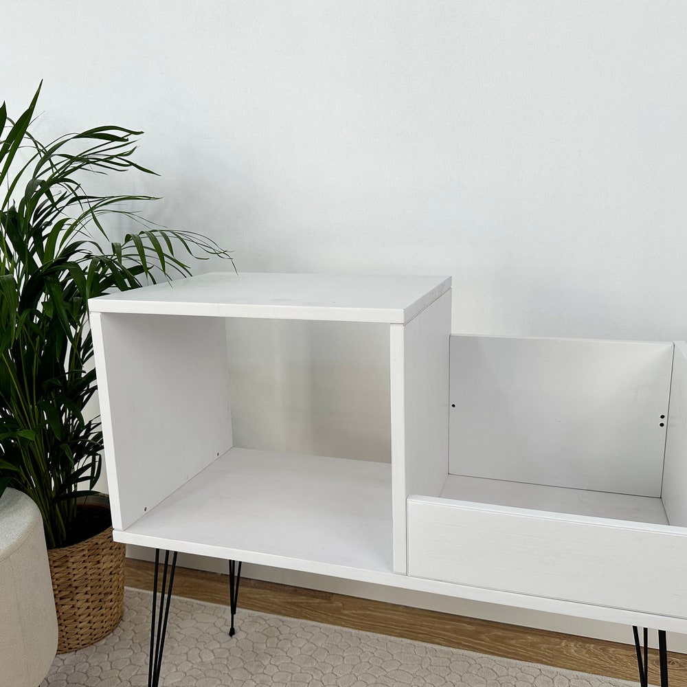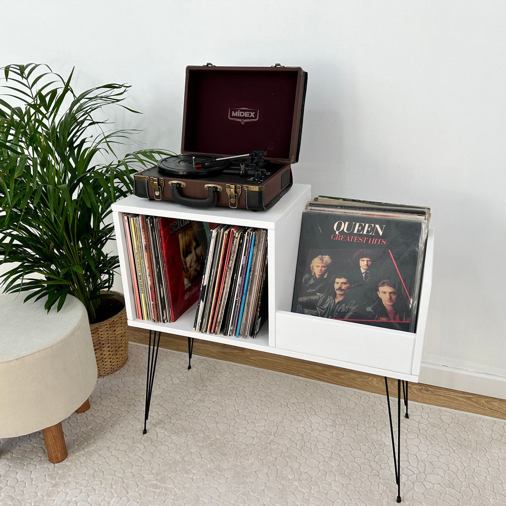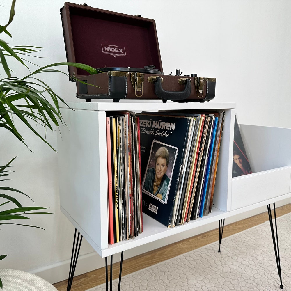White Record Player Stand, Vinyl Console, Record Player Table, Record Cabinet, Vinyl record display