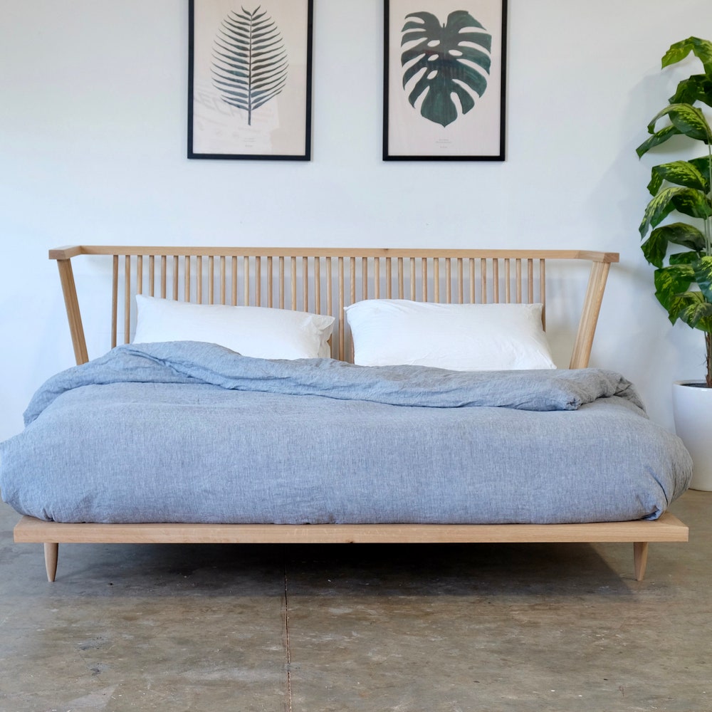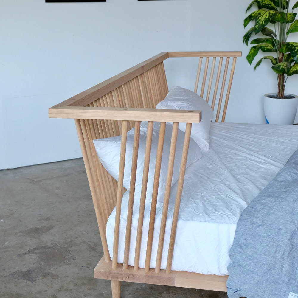 Windsor Style Platform Bed | Modern Windsor Bed | Oak Bed | Mid Century Modern Furniture | Danish Modern Bed | King Queen Bedframe