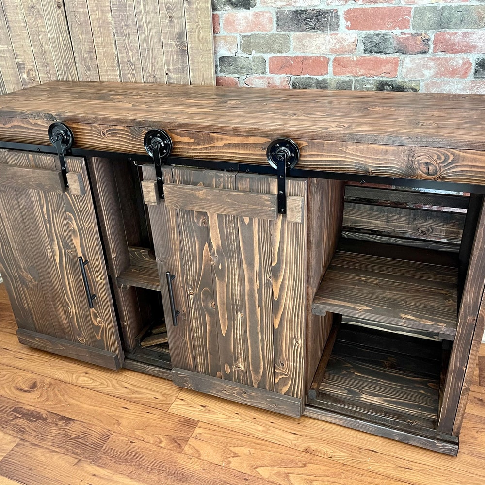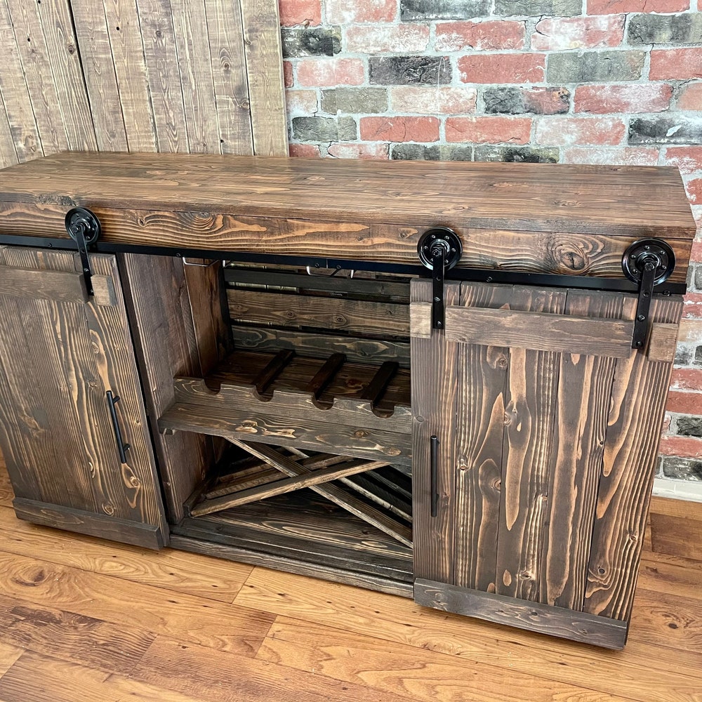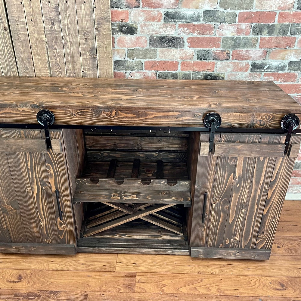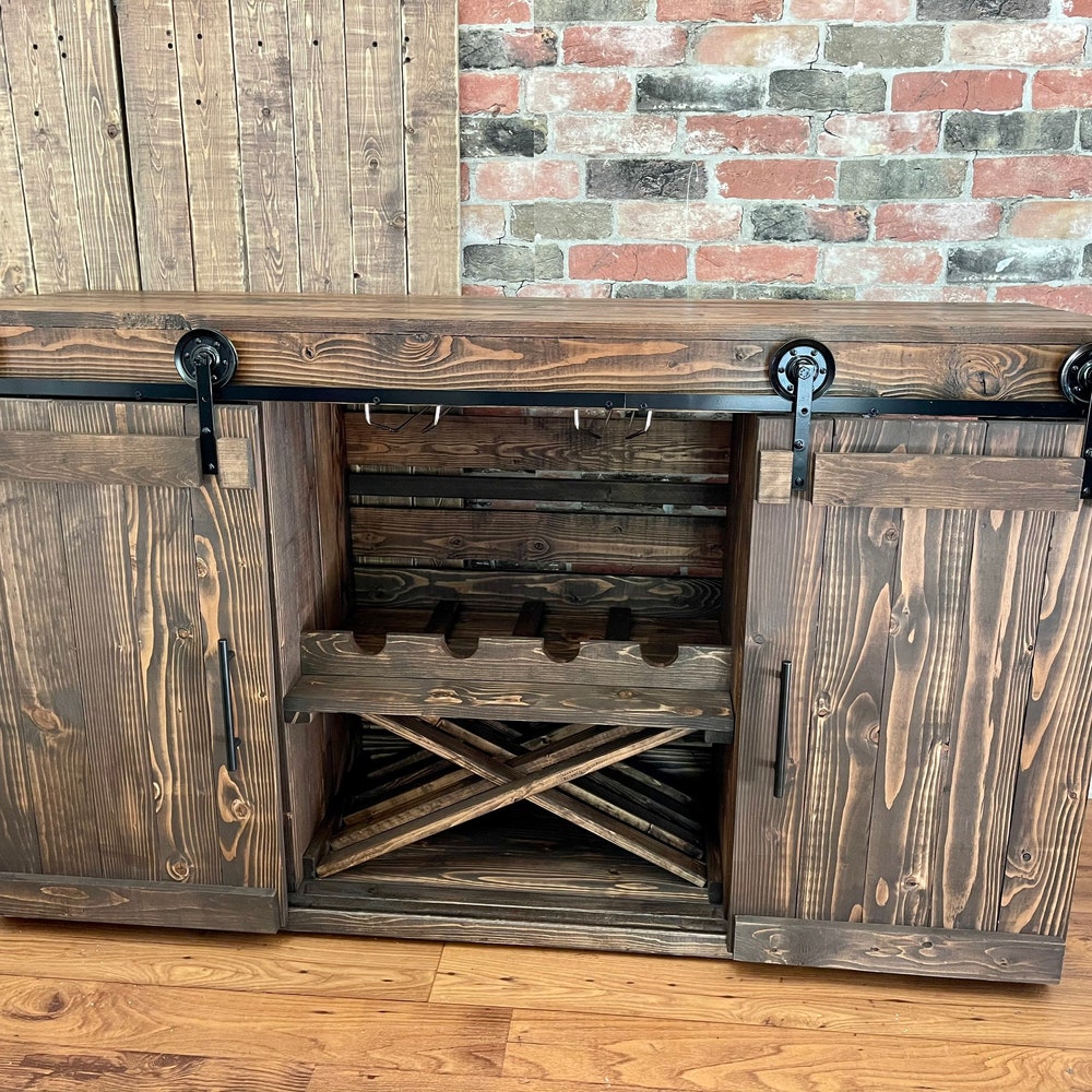 BARN DOORS Wine Bar/Coffee Bar/ Console/ Buffet/ Kitchen Island/ Cabinet with Sliding Barn Doors /Farmhouse/Rustic