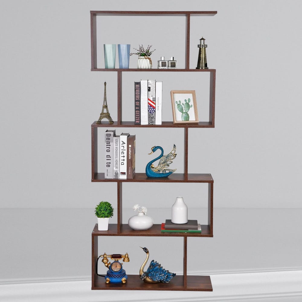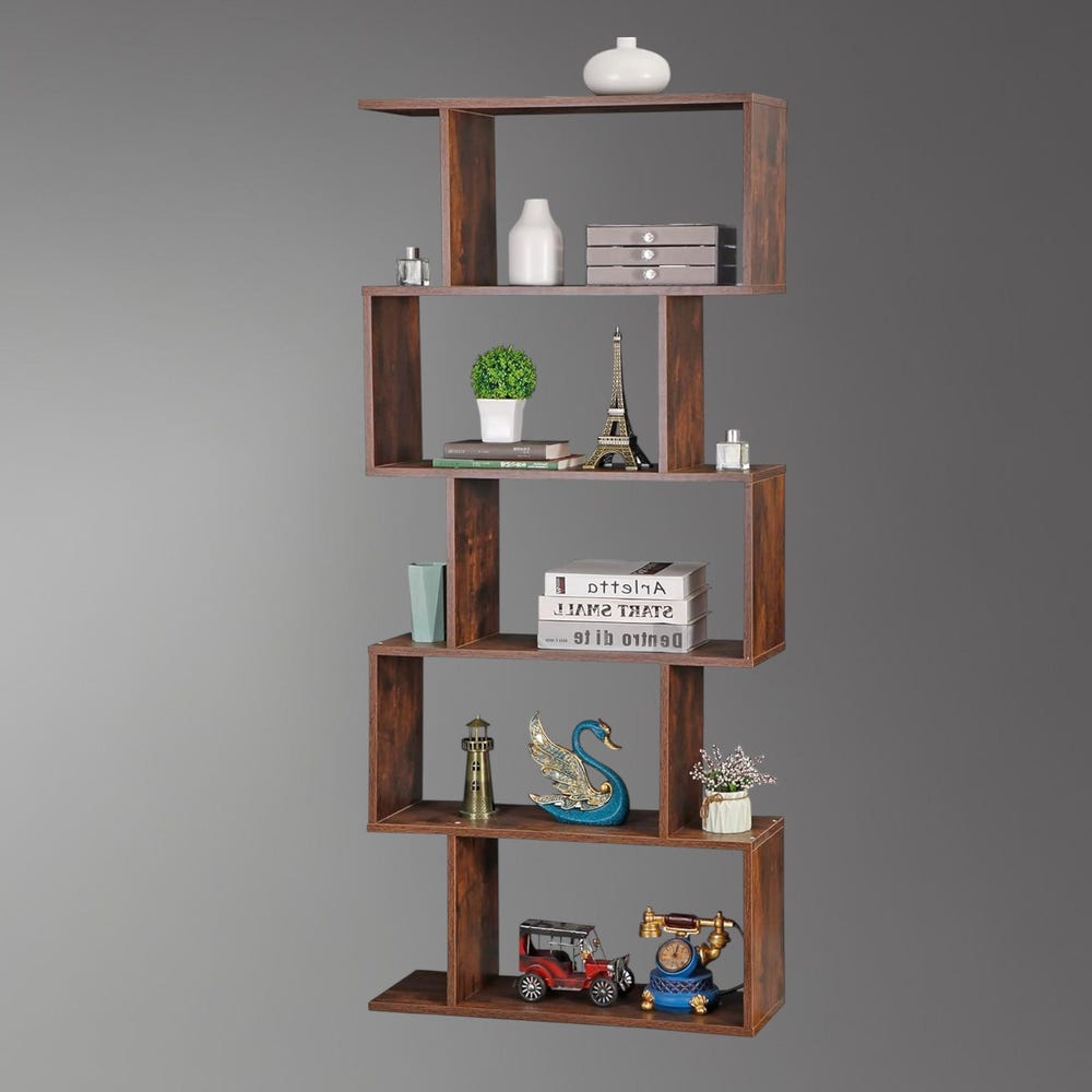 Wood Bookcase, 5-Tier S-Shaped Shelf | Rustic Brown | 62.6″ Tall