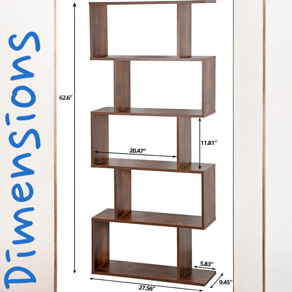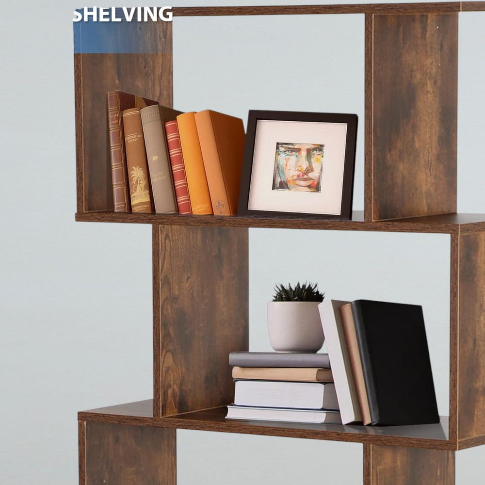 Elevate your home or office storage with this 5-tier rustic S-shaped bookshelf, blending practicality and a modern aesthetic to suit any space!