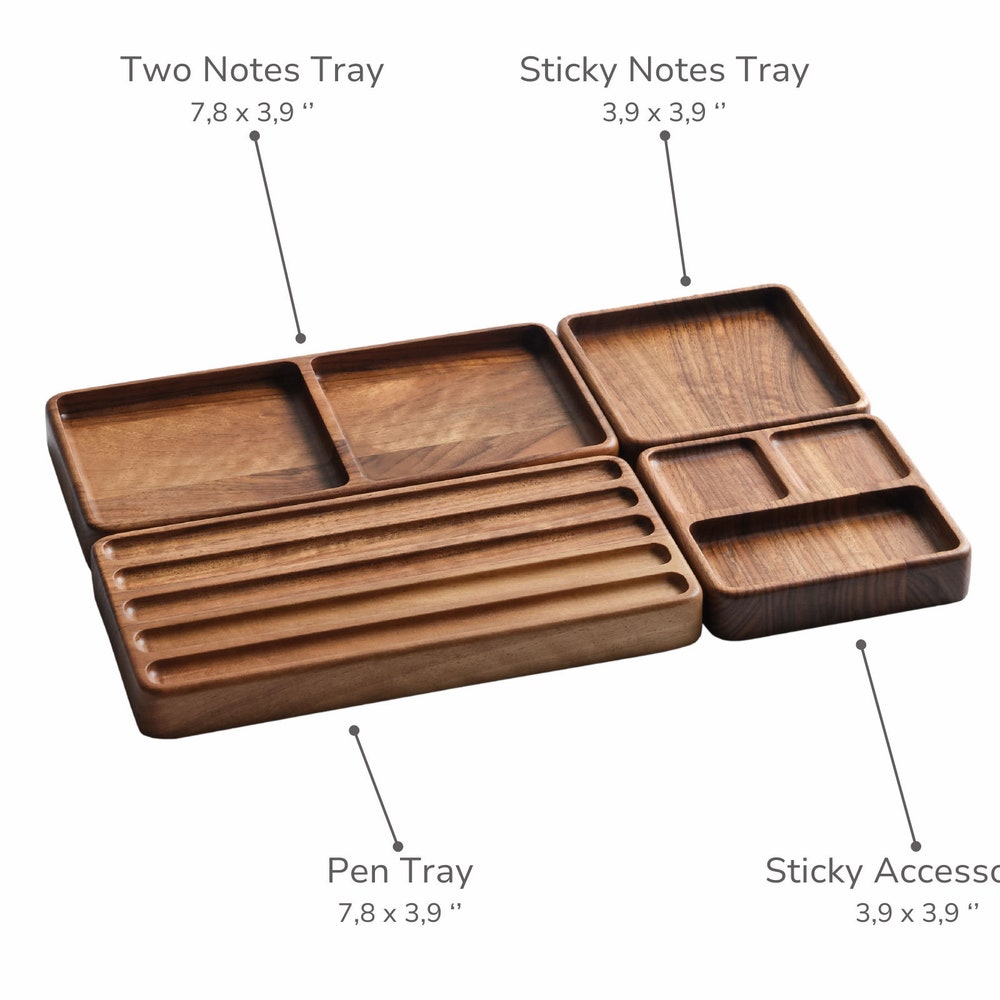 Two Notes Trays (7.8″ x 3.9″ / 20cm x 10cm): These trays offer dedicated spaces for note paper, index cards, and other small essentials. Perfect for jotting down quick thoughts or reminders, they help maintain an organized, efficient workflow.