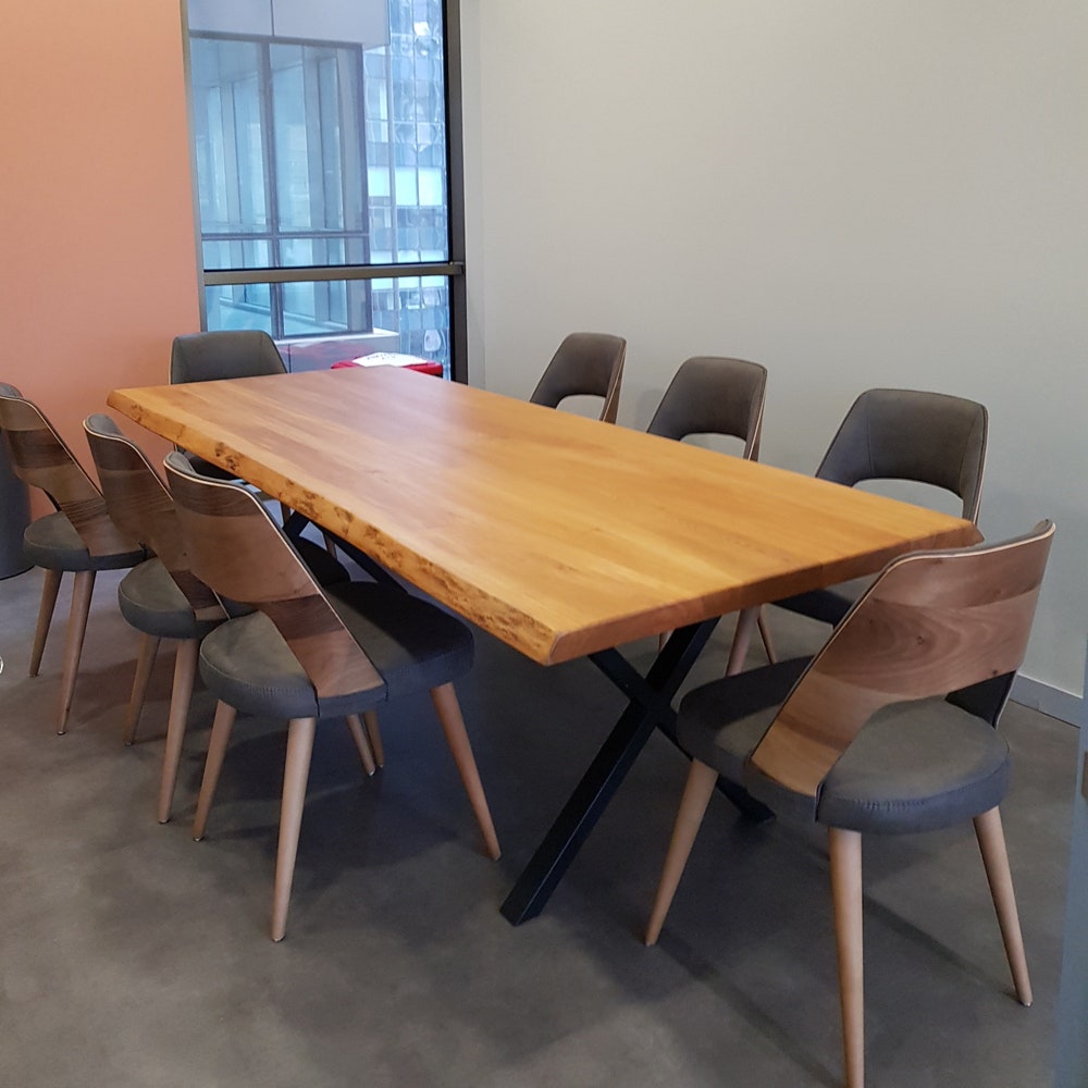 With the natural wooden table warmth, you can use it as a dining table in your home, and you can make your work more enjoyable as a meeting and a work desk in your office.