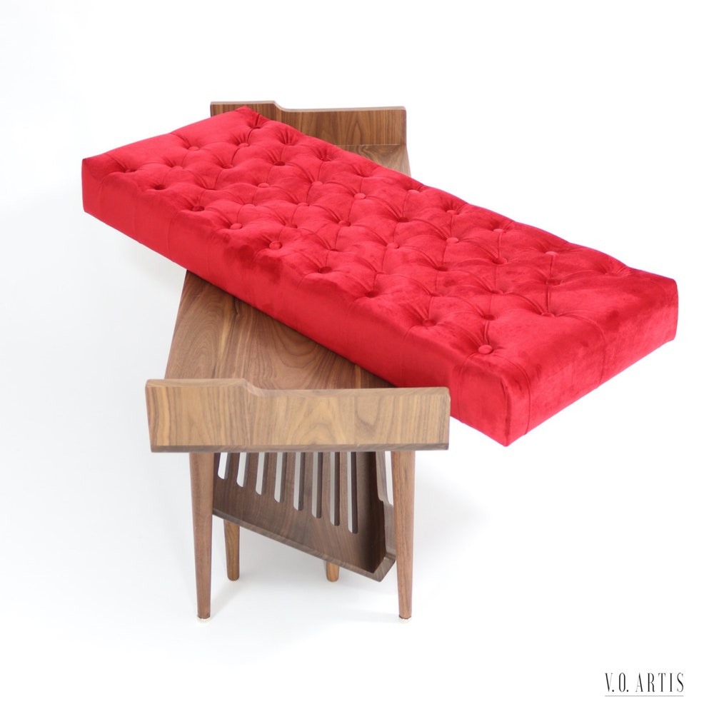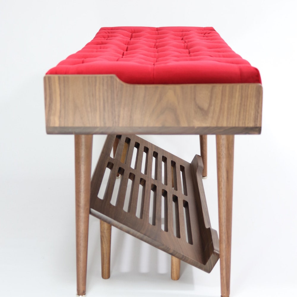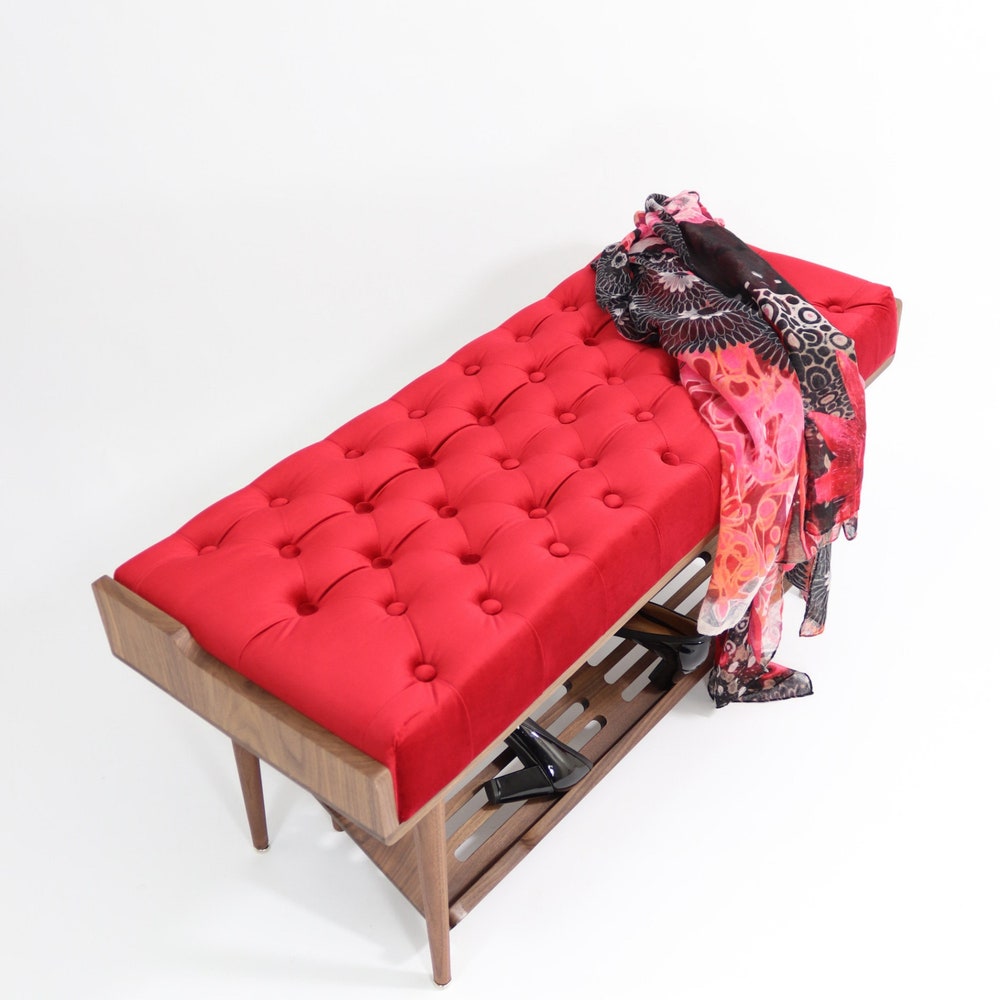 Wood entryway shoe storage, Wood shoe rack, Shoe Cabinet, Shoe Bench in Walnut or Oak and Fabric