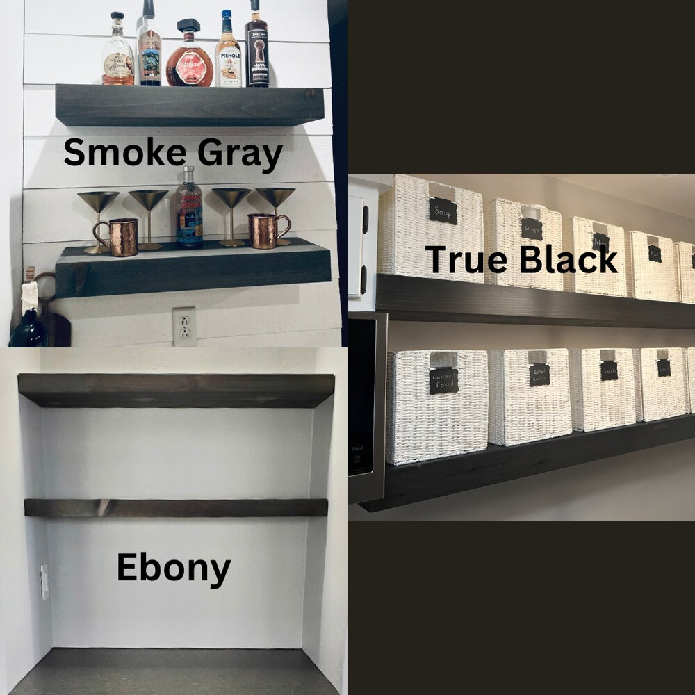 This beautiful handmade, real wood, floating shelf is perfect for any of your shelving needs! These shelves are made from beautiful pine boards and stained to your choice in color! There are 10 different semitransparent stain options that show the beautiful wood grains! Each stained shelf has a clear coat for added protection against scratches and moisture!