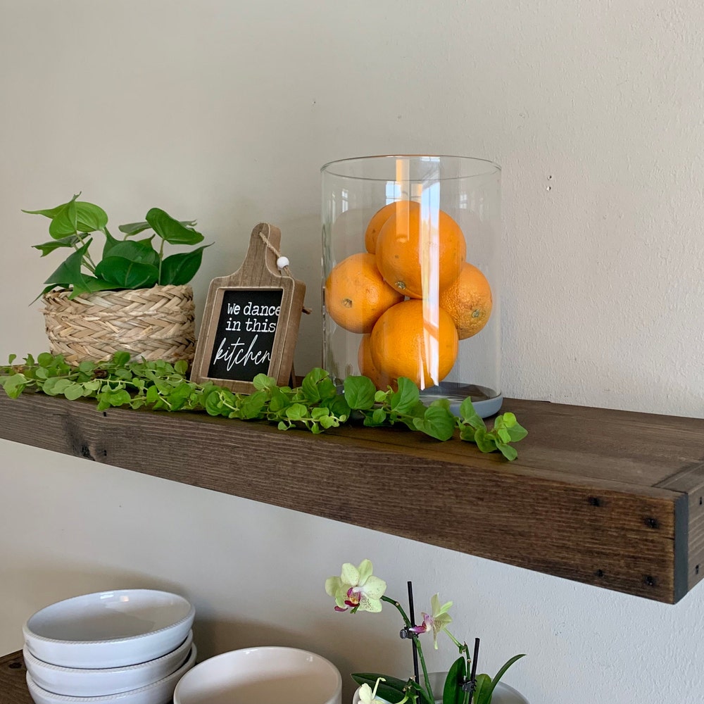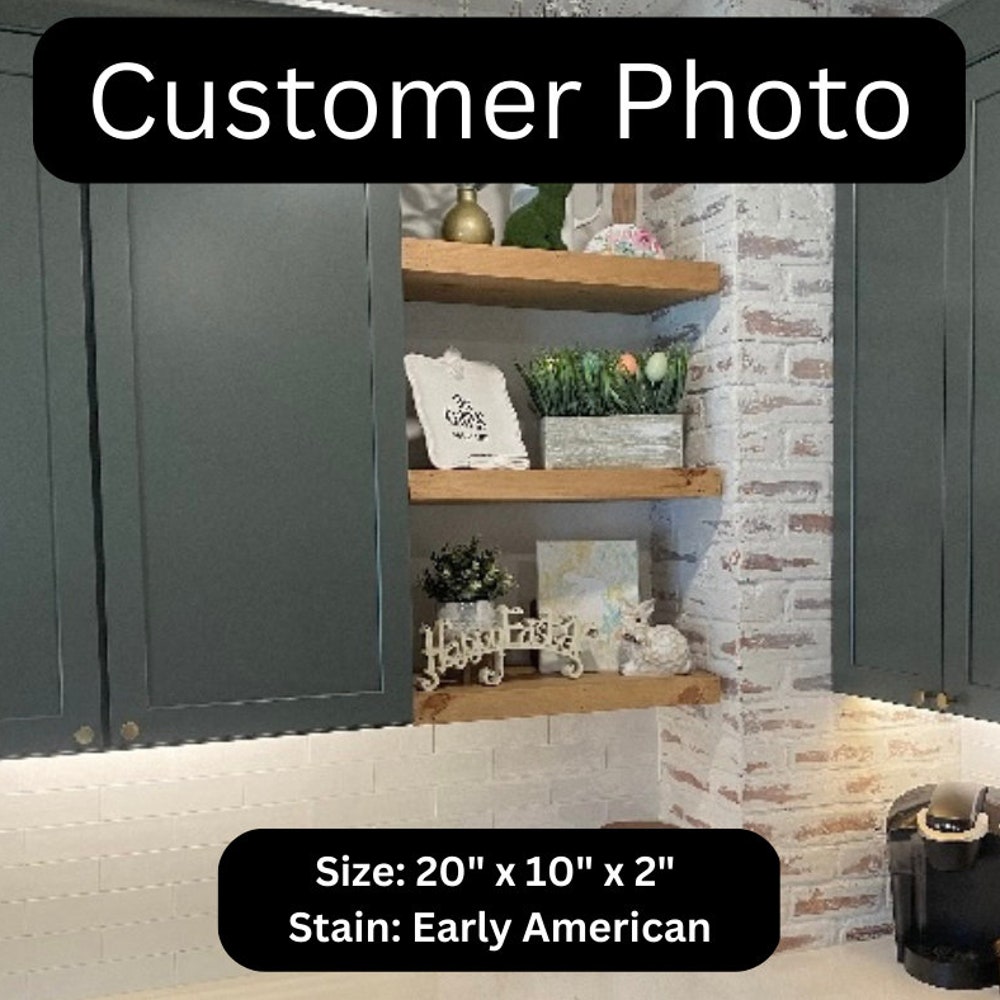 This beautiful handmade, real wood, floating shelf is perfect for any of your shelving needs! These shelves are made from beautiful pine boards and stained to your choice in color! There are 10 different semitransparent stain options that show the beautiful wood grains! Each stained shelf has a clear coat for added protection against scratches and moisture!