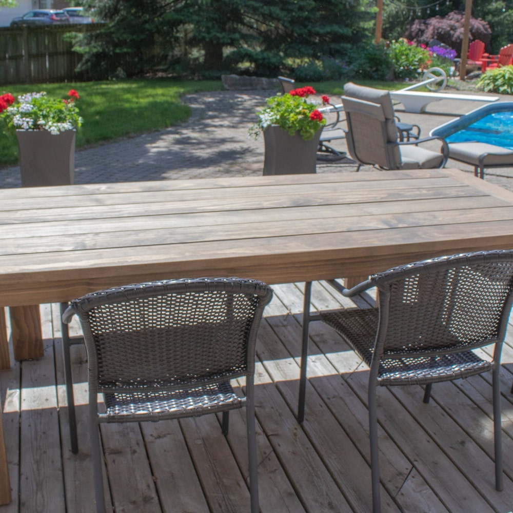 Wood Outdoor Table and Bench, Wood Patio Table, Accoya Wood Outdoor Dining Table, Backyard Picnic Table and Bench, Custom Wood Outdoor Table