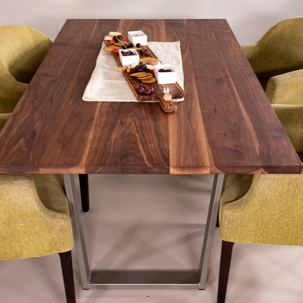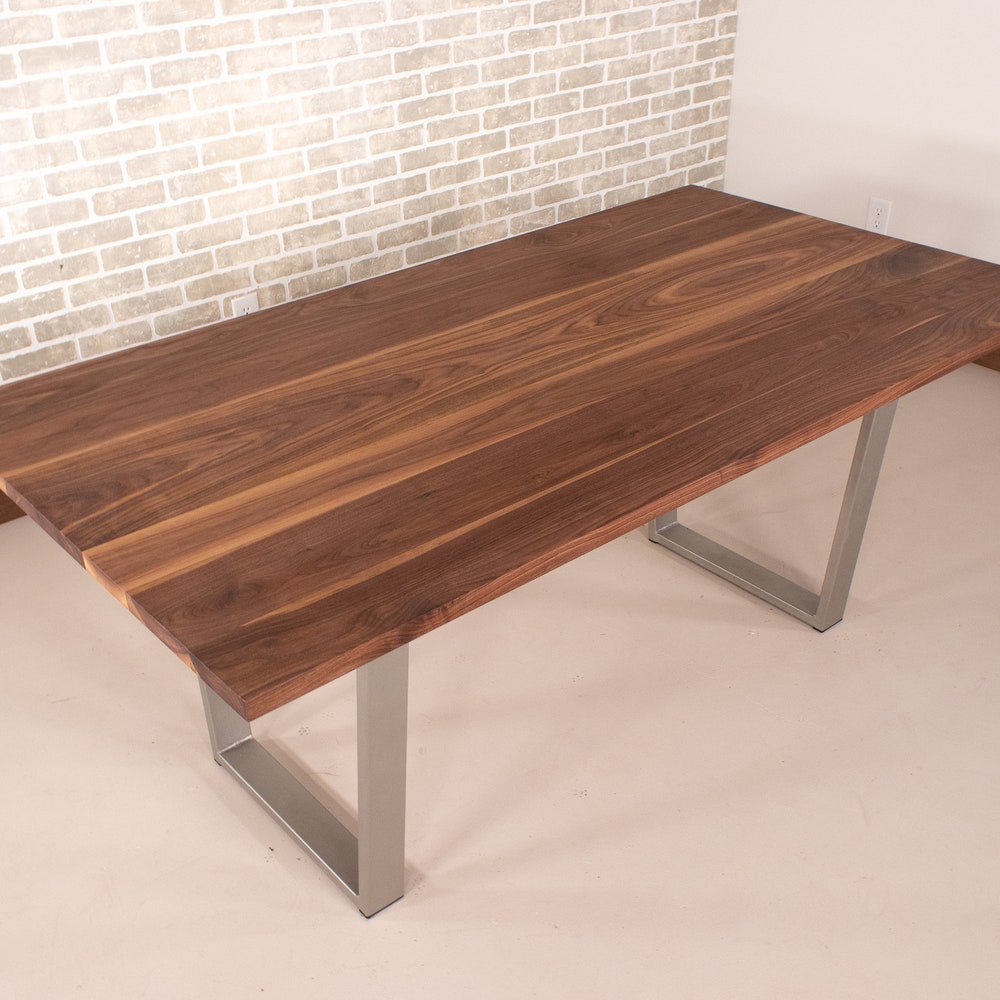 Wood Table Top on Nickel Colored Steel Legs, Walnut Kitchen Table, Kitchen Dining Table, Custom Walnut Dining Table, Solid Wood Dining Table