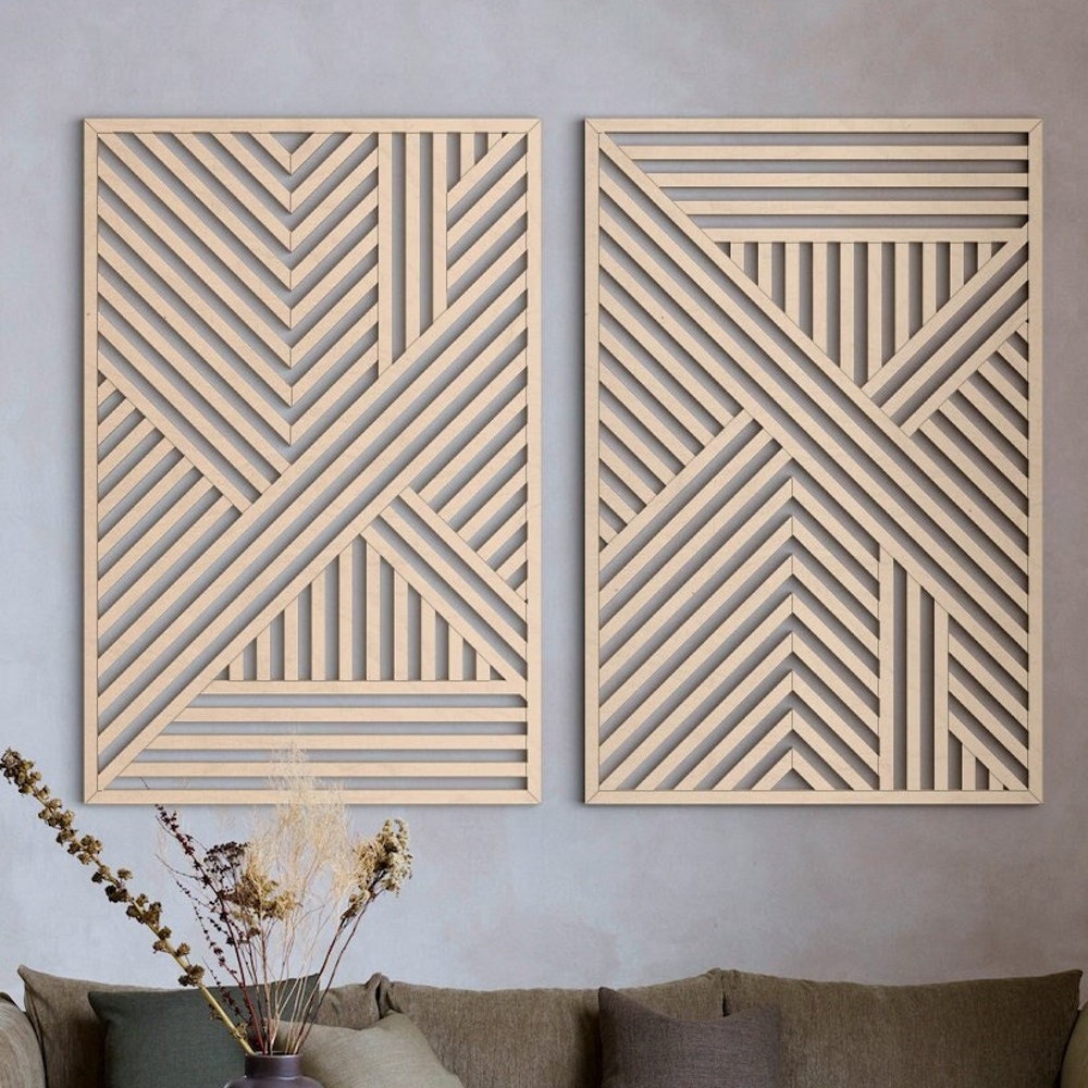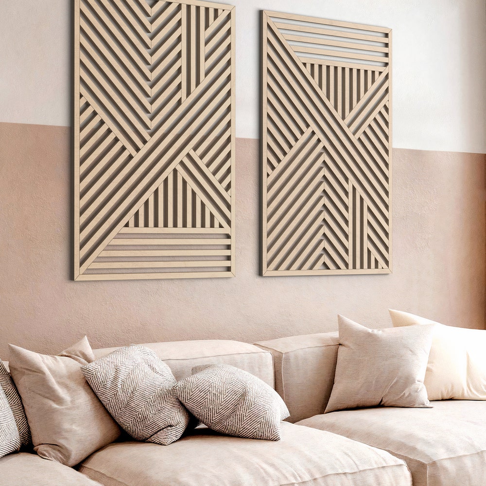 Wood Wall Art | Geometric Decor | Set of 2 wall art | Modern Wooden wall art | Abstract Wall Art | Home decor | Extra Large Wall Art