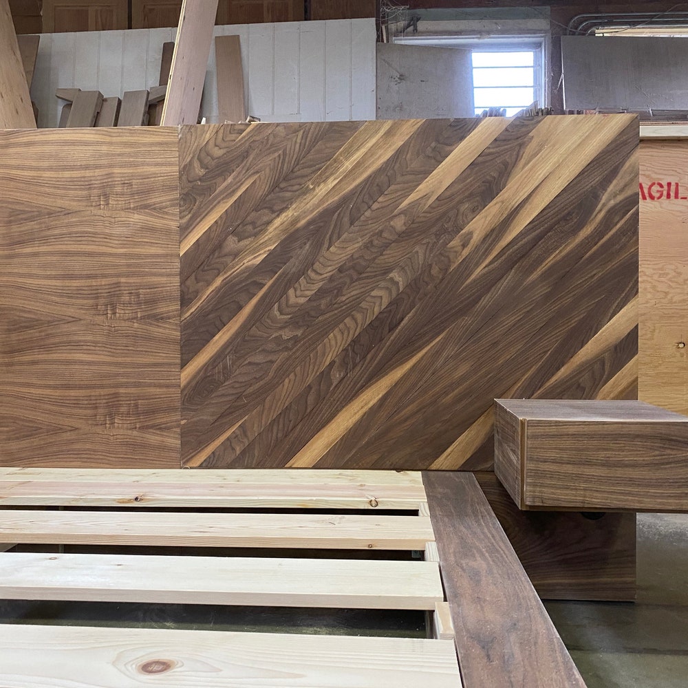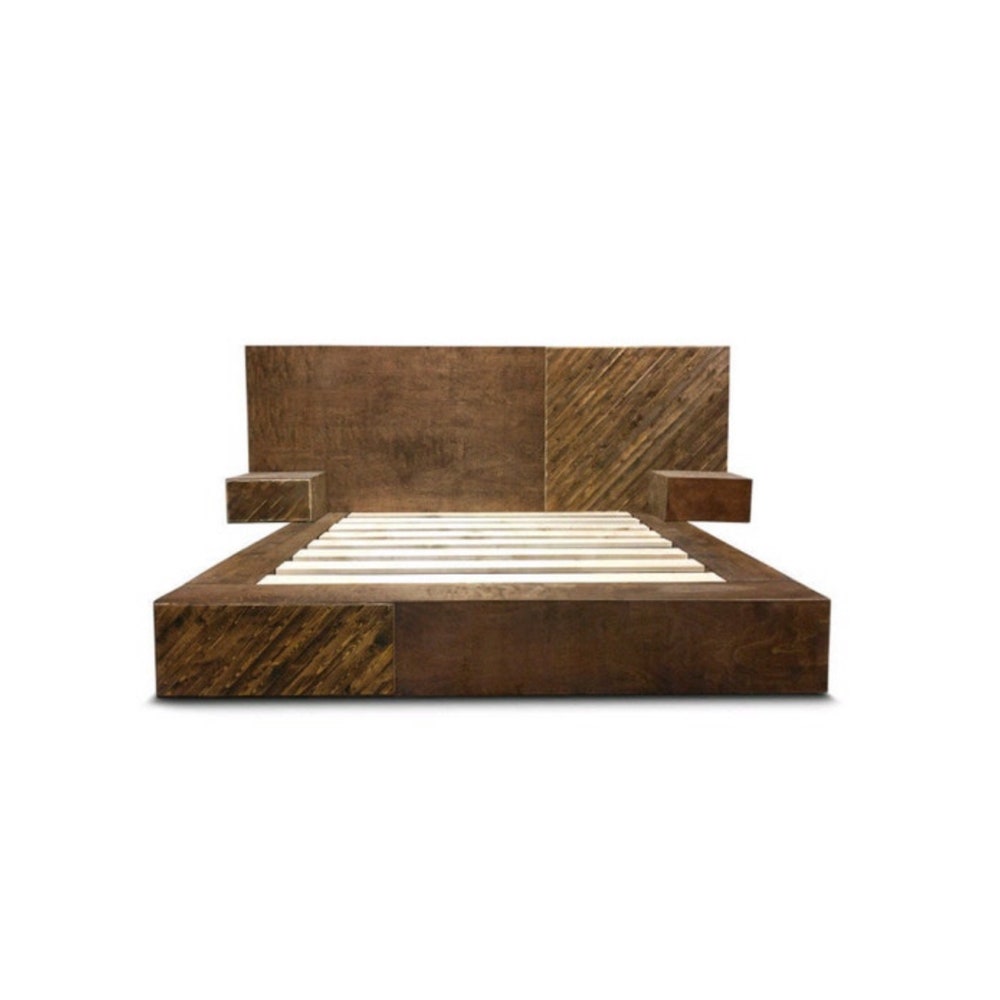✔ Industrial feel complemented by asymmetrical angled grain in the headboard and footboard