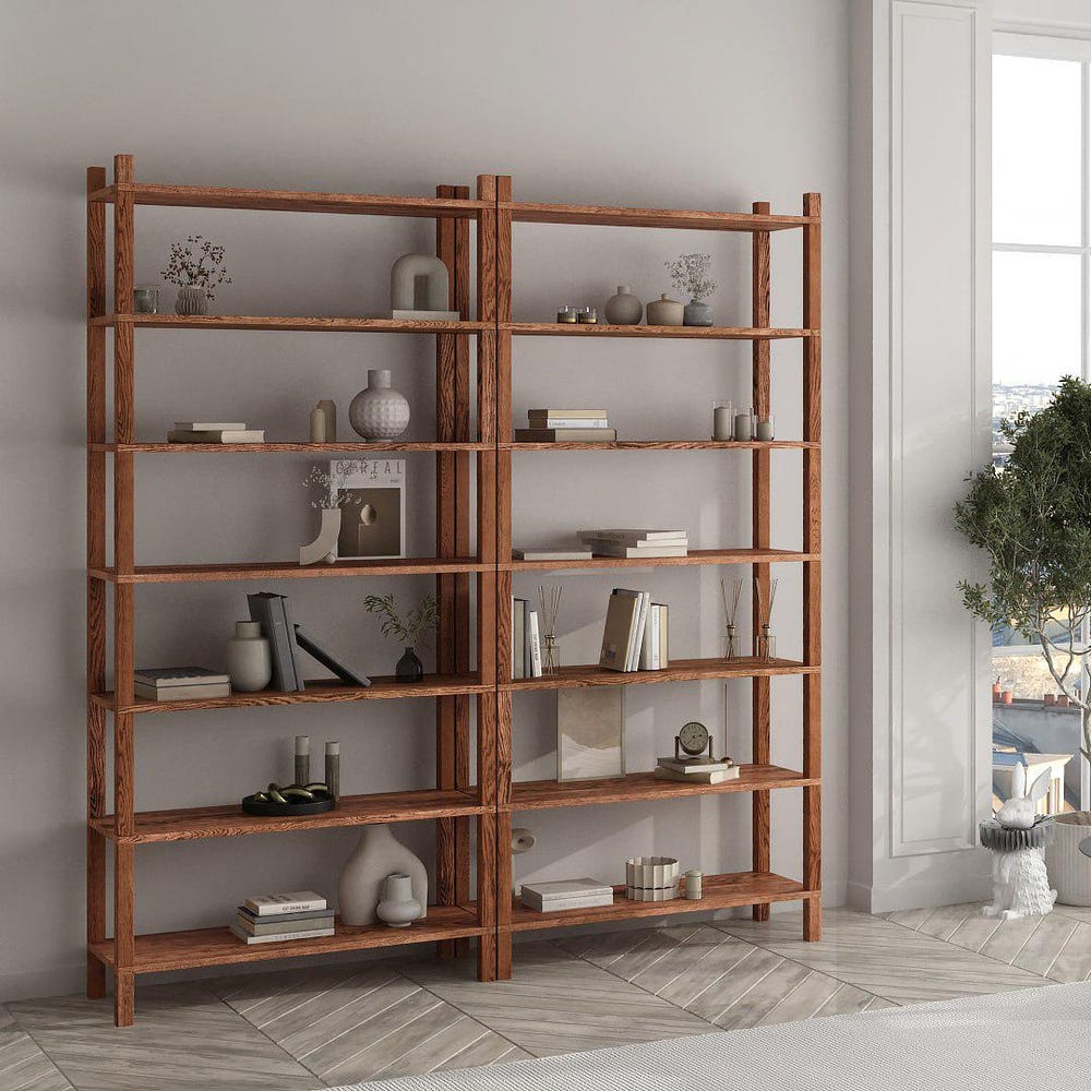 Wooden bookcase Minimalist floor standing bookshelf Open solid wood shelf for living room and office Solid wood decor