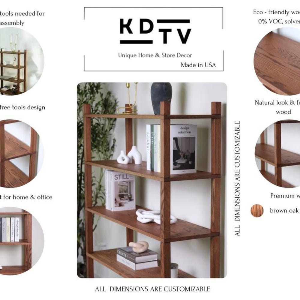 Easy organization of any space with this natural oak wood shelf! The perfect solution for the living room, bedroom, kids’ room, and office.