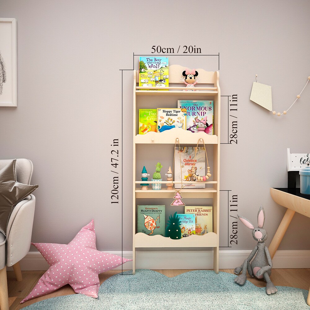 This wooden Montessori Vertical Bookshelf will help you to organize children’s space conveniently and compactly. It designed so that the child can fully use the furniture.
