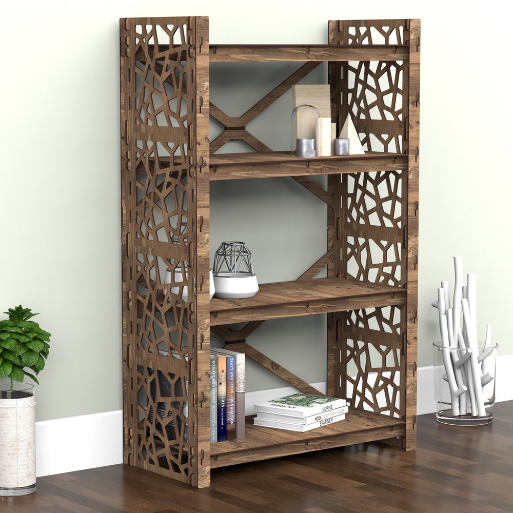 Wooden Bookshelf, Plant Shelf, Display Case, Bookcase, Wooden Shelves, Hexagonica