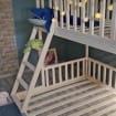 Crafted from sustainable, high-quality wood, this bunk bed is built to last, ensuring years of comfort and security. The natural wood finish gives it a timeless look that will complement any room decor, while the sturdy ladder ensures easy and safe access to the top bunk.