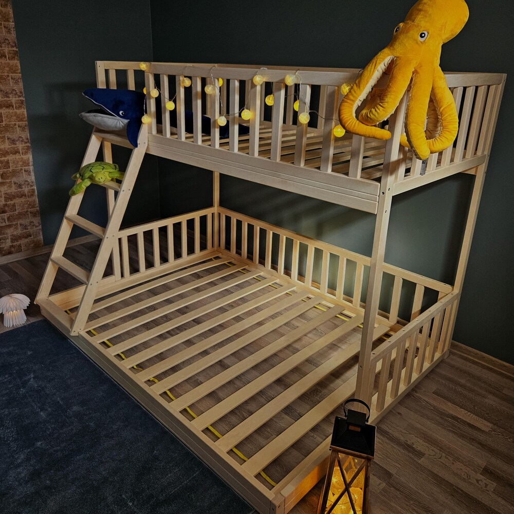 Wooden Bunk Bed for Kids with Safety Rails, Eco Materials, Bed Frame, Bottom Bed, Kinderbett, Floor Bed, Montessori floor bed, Kids Bed