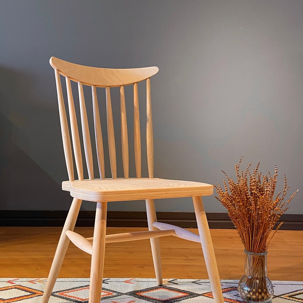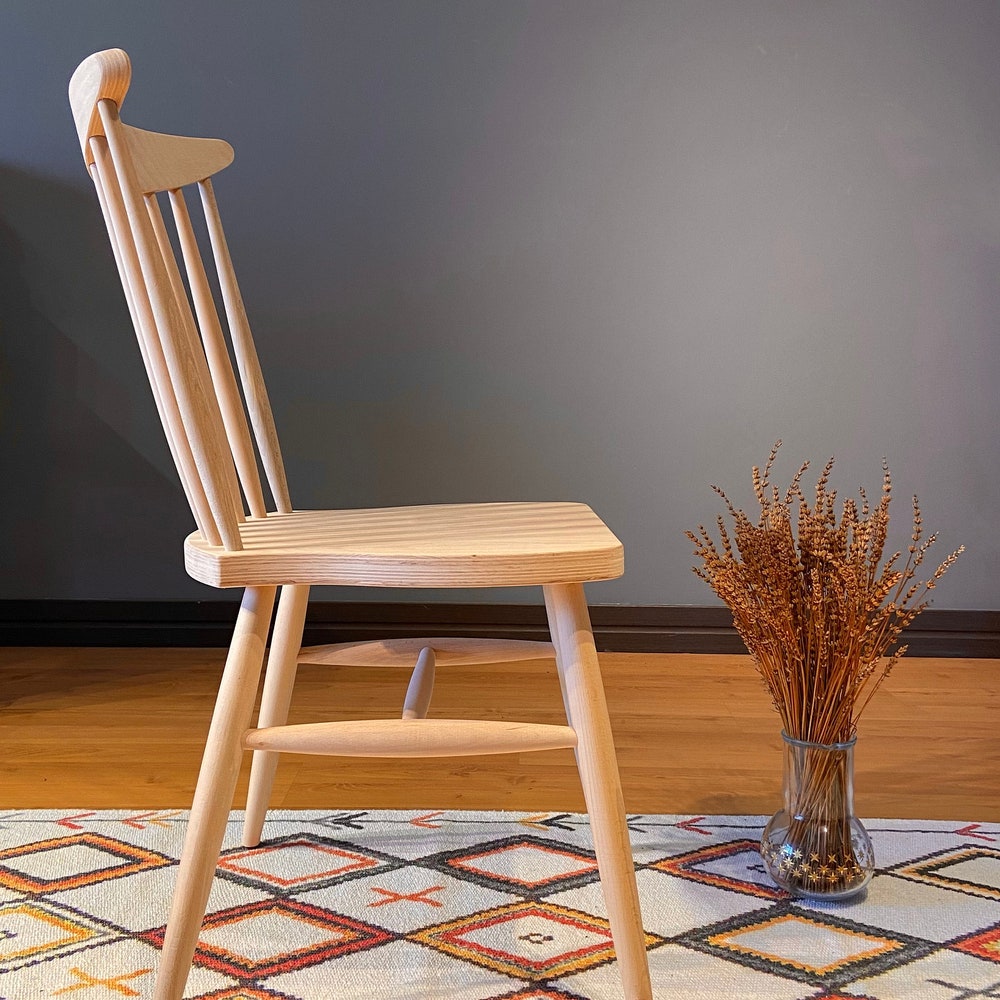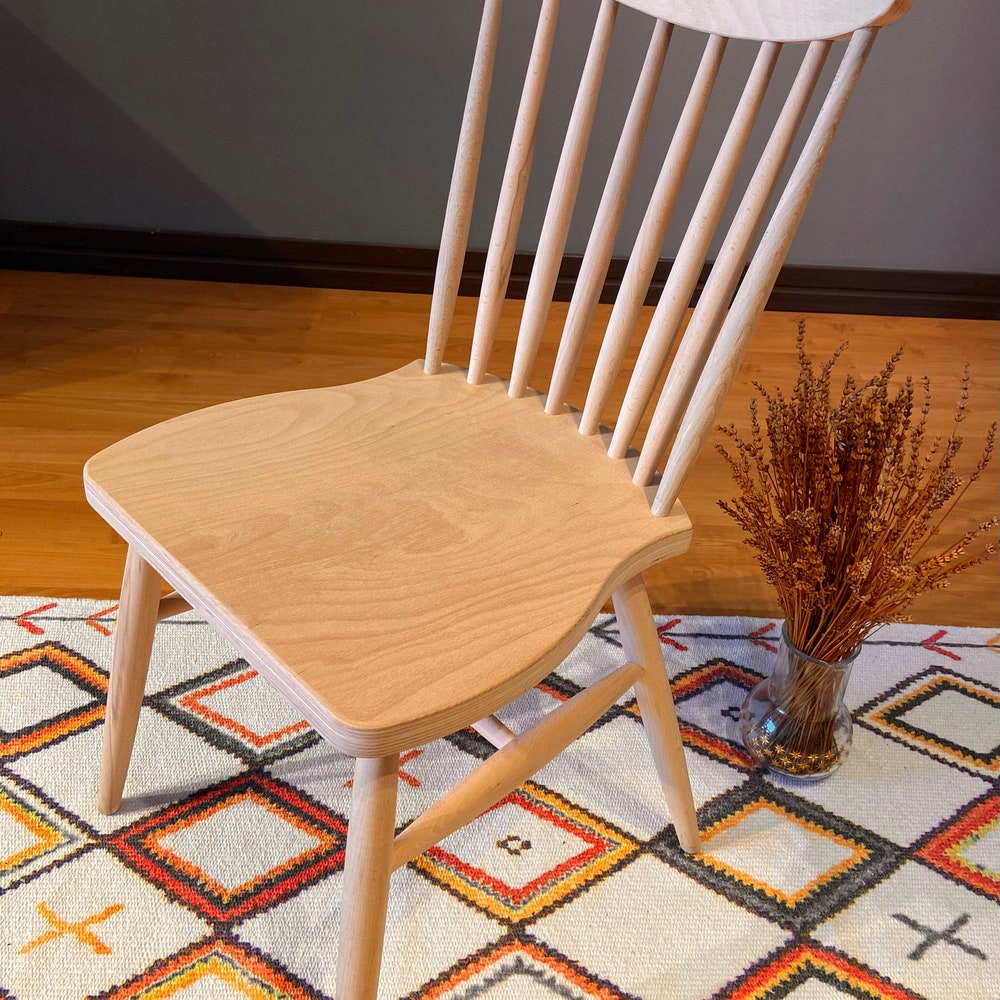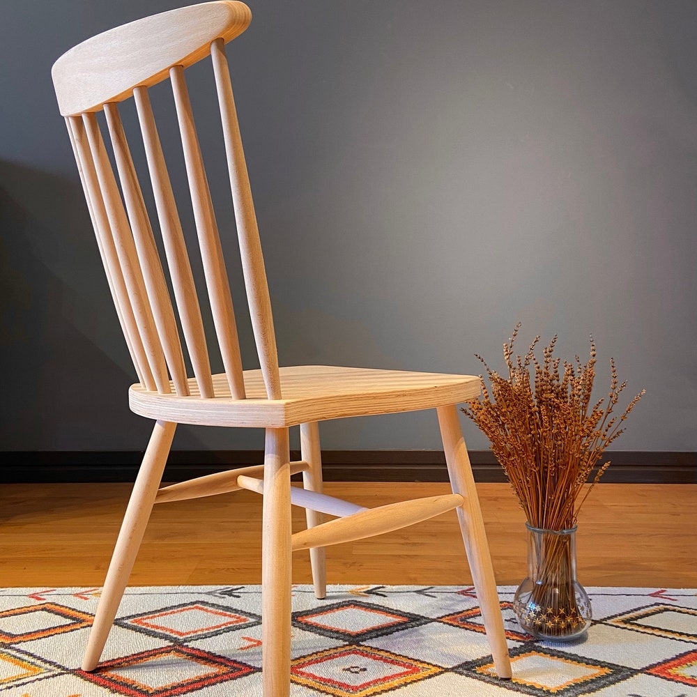Handmade windsor back farmhouse chair made of 100% hornbeam wood, where you can customize the finish and add leather seat. If you want this chair with a painted or upholstered seat, please send us a message. You can buy the chair raw and paint it easily as a hobby. It is suitable for use as a dining chair, desk chair, bistro chair.
