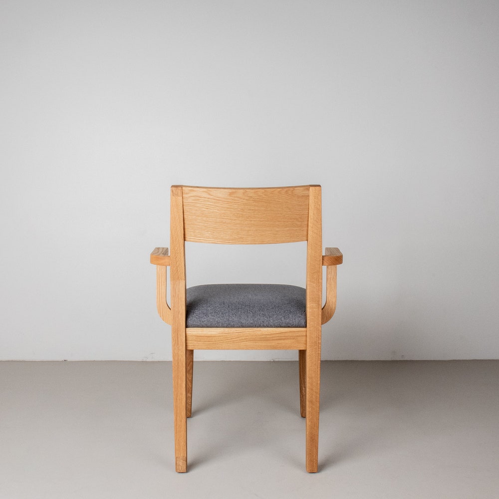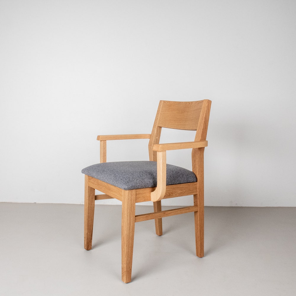 Our Aubrey wooden dining chairs have a timeless style with their simple lines. They are designed to complement your Loewen Design Studios table and can be built of Walnut, Oak, and Maple in any of our finish colors. This particular version is a arm chair that is often used on the ends of the table. Aubrey chairs are available as either side chairs or arm chairs.