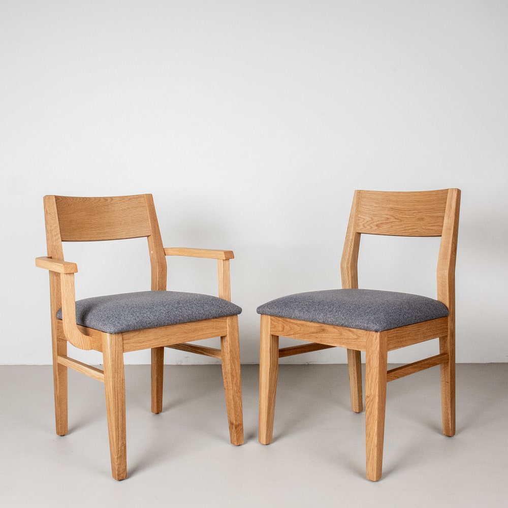 Wooden Dining Chair with Upholstered Seat, Solid Oak Dining Chair, Fabric Seat Wood Chair, Oak Arm Chairs and Side Chairs, Kitchen Chairs