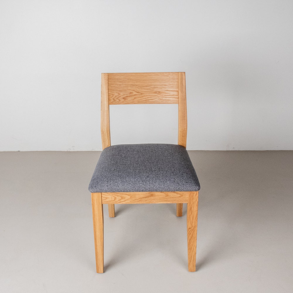 The chairs as photographed have upholstered seats in graphite colored fabric. Wood, faux leather or leather seats are also available. The seat options can be viewed here: https://www.loewendesignstudios.com/pages/fabric-seats