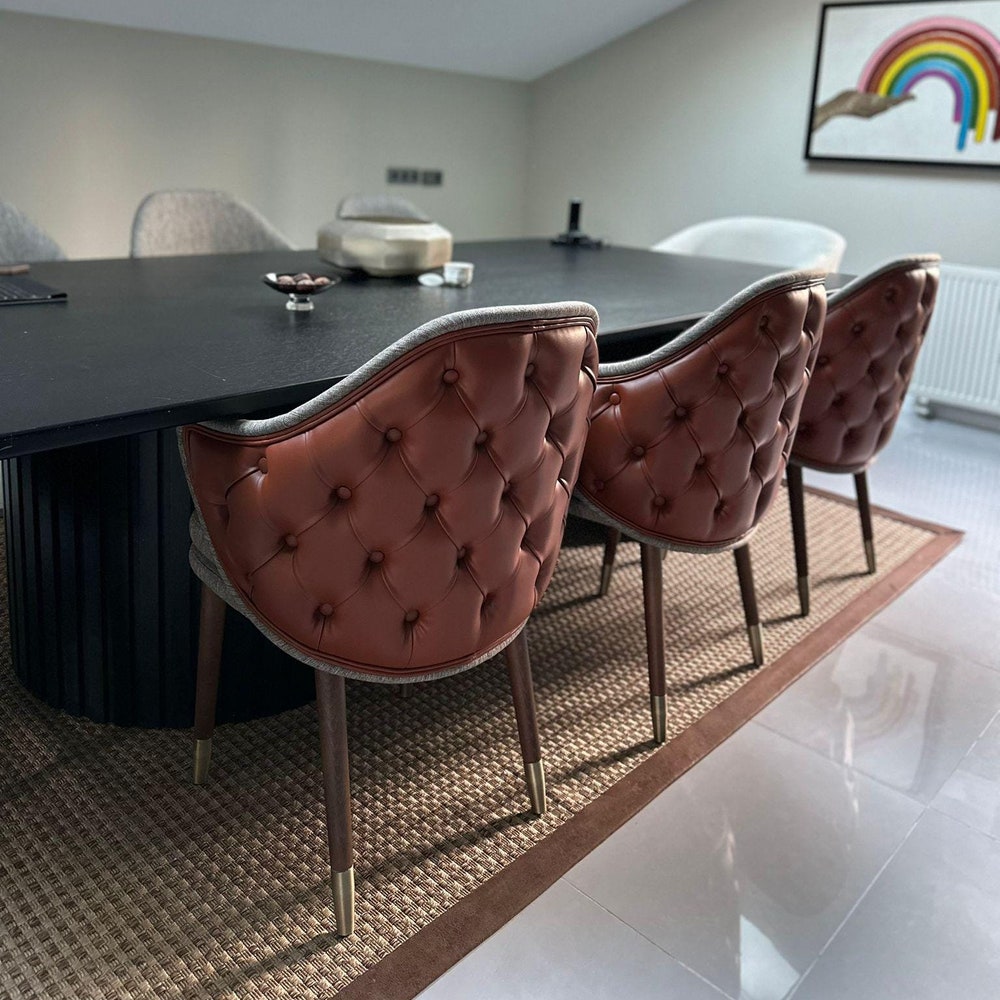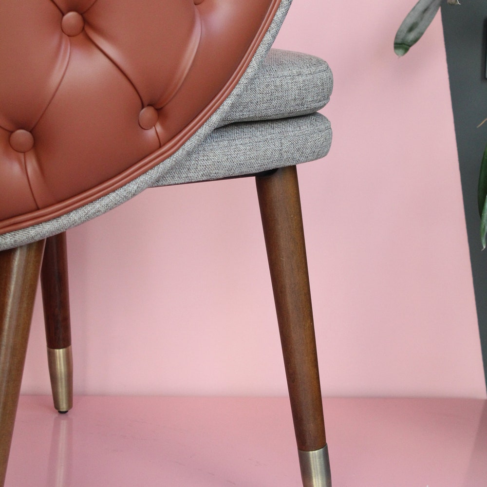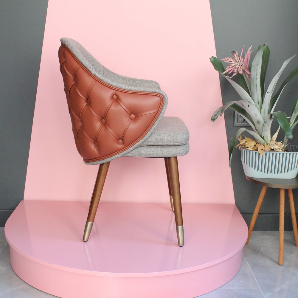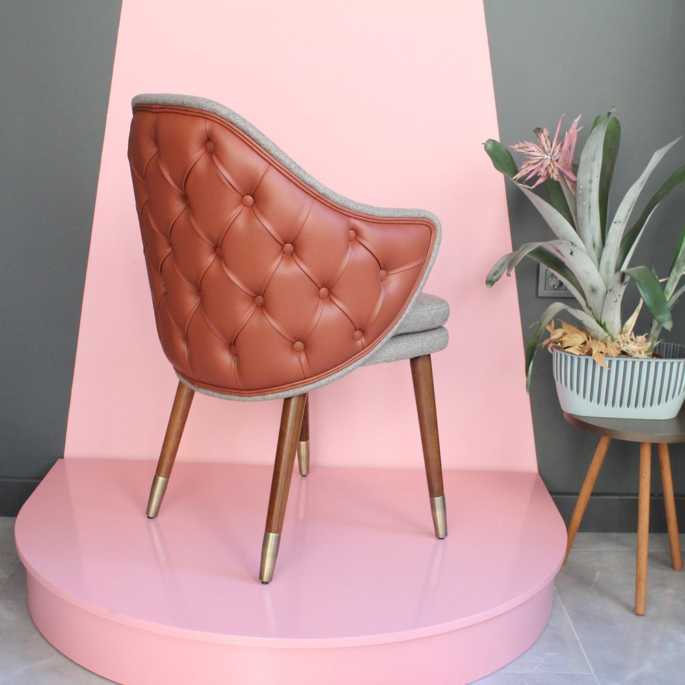 Wooden dining room chair. Suitable for living room and kitchen use. It will add a luxurious look to your home thanks to its high-quality upholstery with quilted details on its back. It is suitable for commercial use. It can be used in hotels, restaurants and interior design projects.