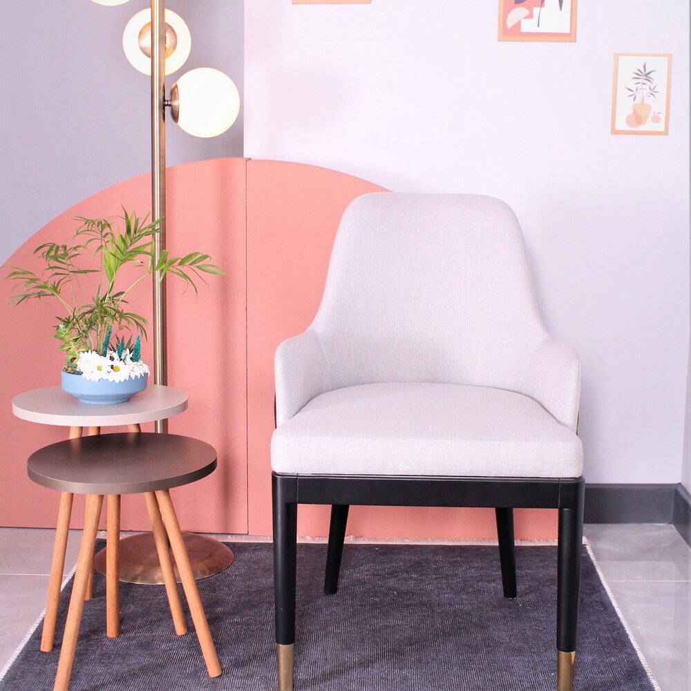Its raw material is hornbeam wood. Natural, walnut and black color options are available. Fully customized fabric colors are available. The fabric on it is a linen-like fabric.