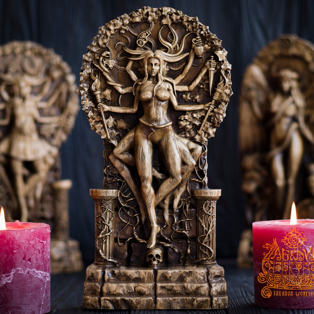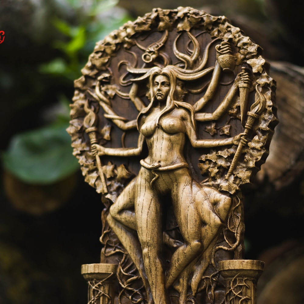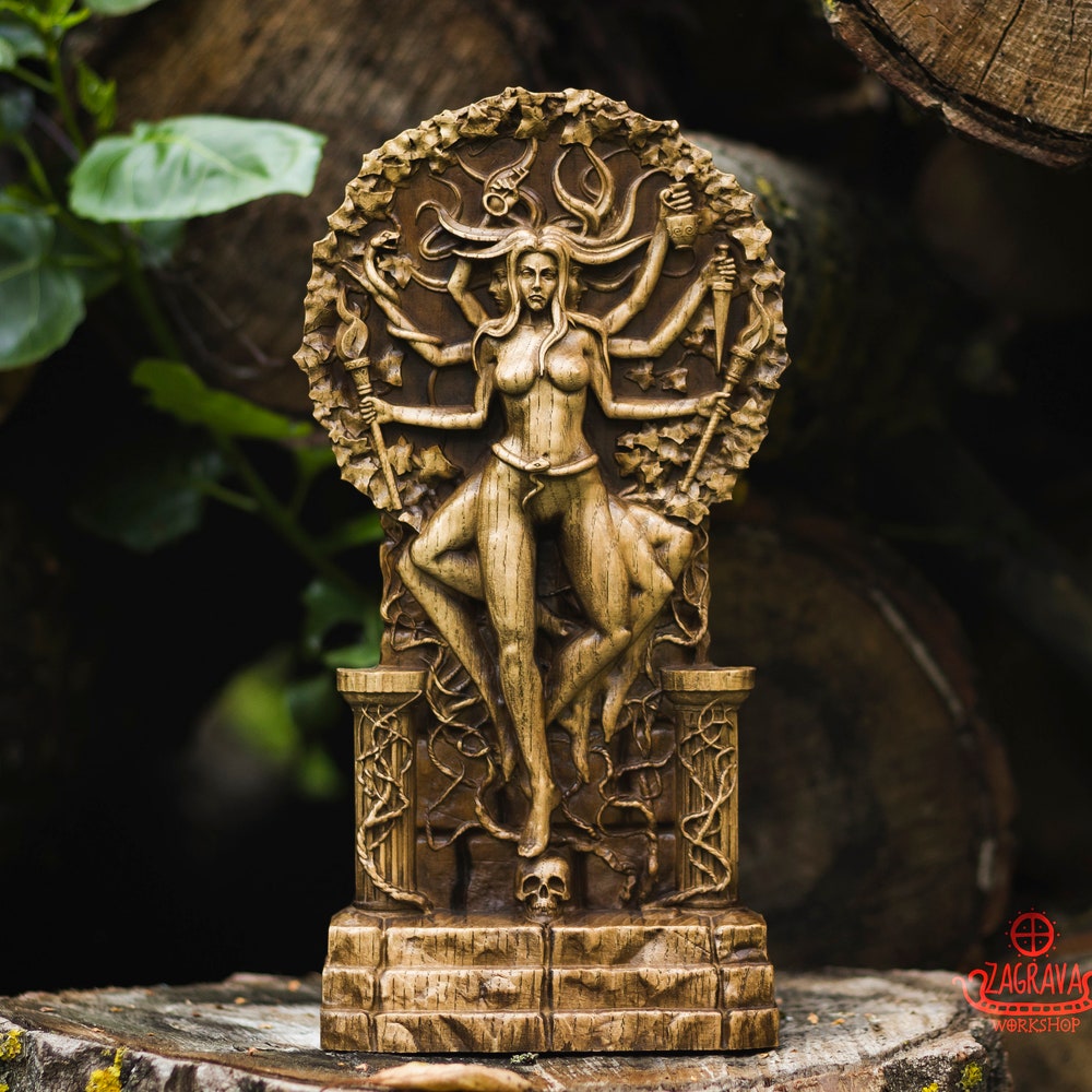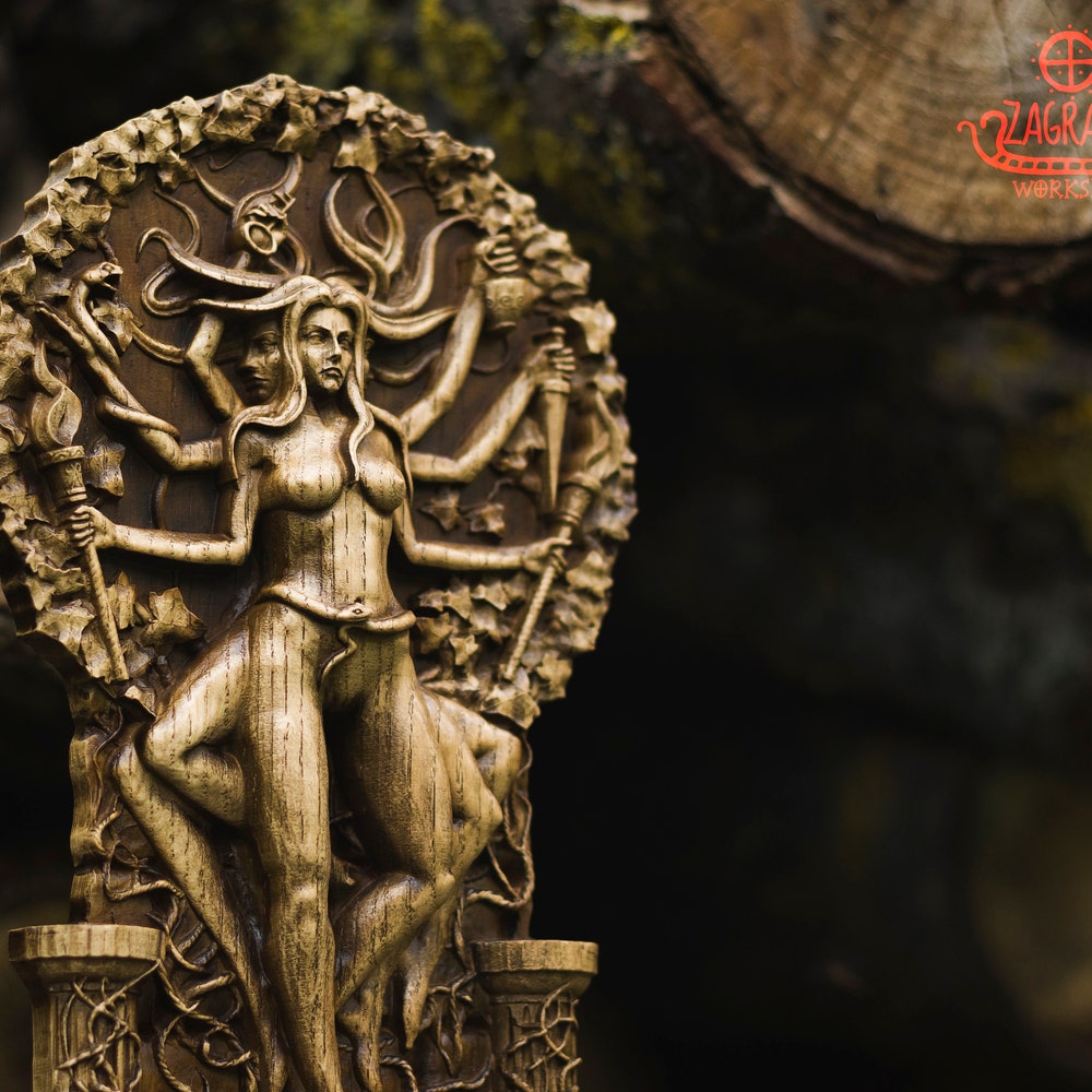 Wooden Hecate, Hekate statue, Greek goddess, pagan goddess, wiccan, wicca, altar, druid, witches, gaelic, witchcraft