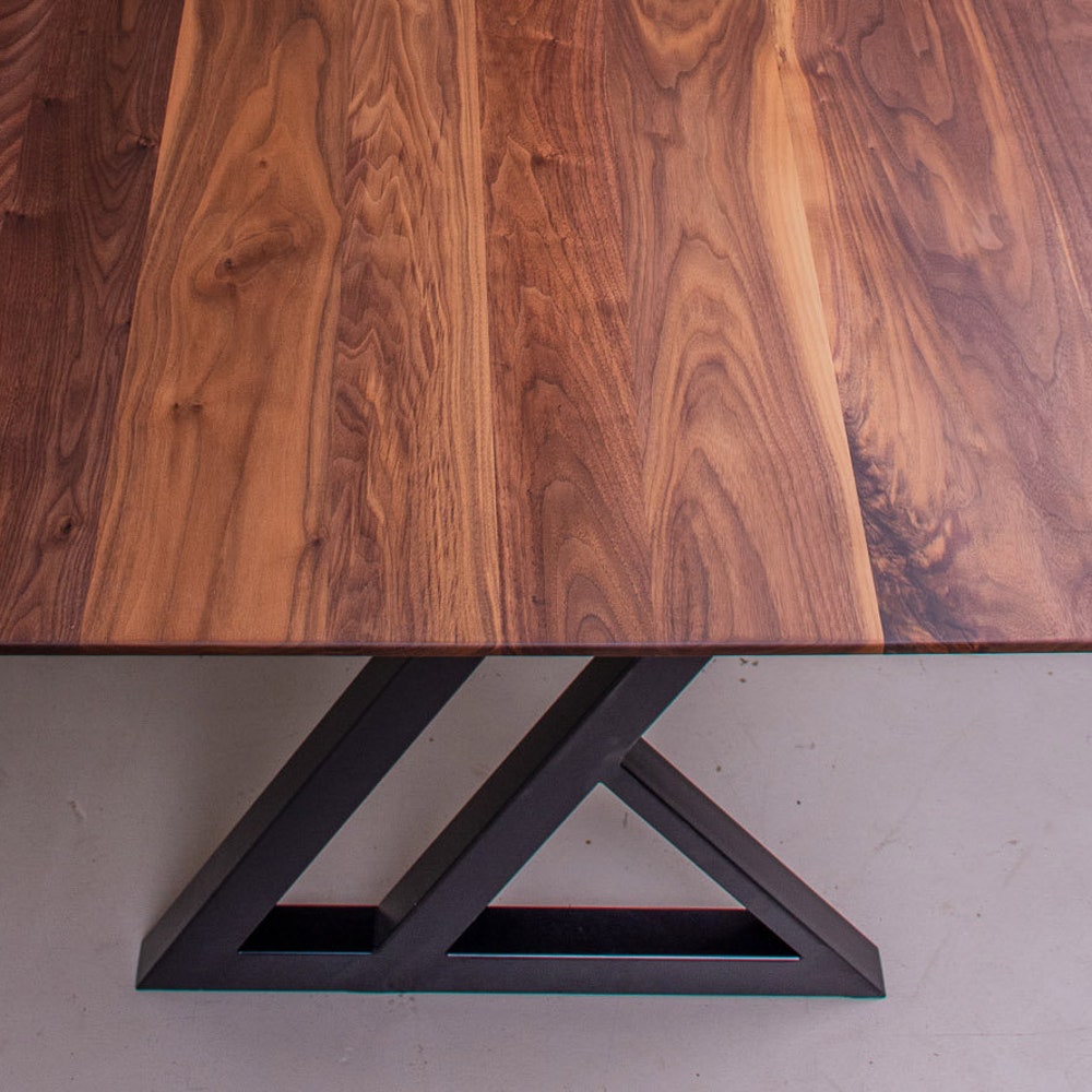 This wooden kitchen table is the the kind of table you’ll use forever. With it’s solid hardwood top and steel legs it is sturdy and will stand up to whatever you need from it. And it looks great too. The solid walnut top highlights the beautiful coloring of the wood and the Zionz legs are a unique twist on classic steel legs. We build every table to order so there are many ways to make this table perfect for you.