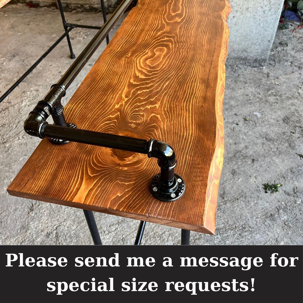 Wooden Long Bar Table, Sofa Bar Table, Industrial Bar Table, Entrance Hall Table, Natural Live Edge Furniture, Custom Sizes and Finishes