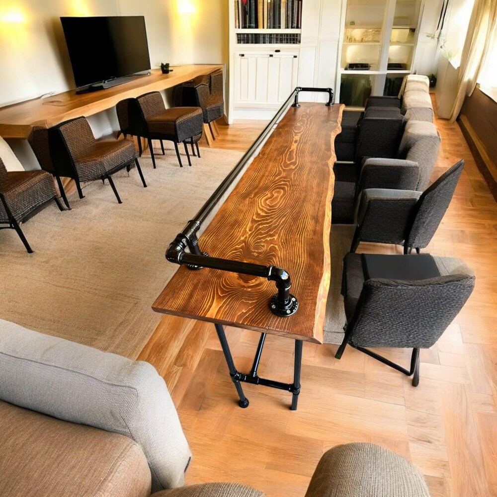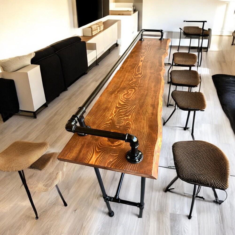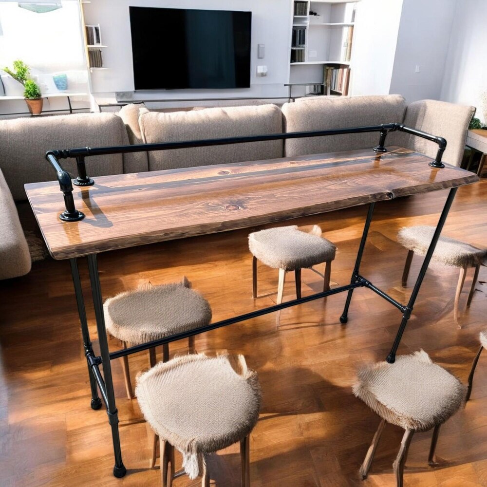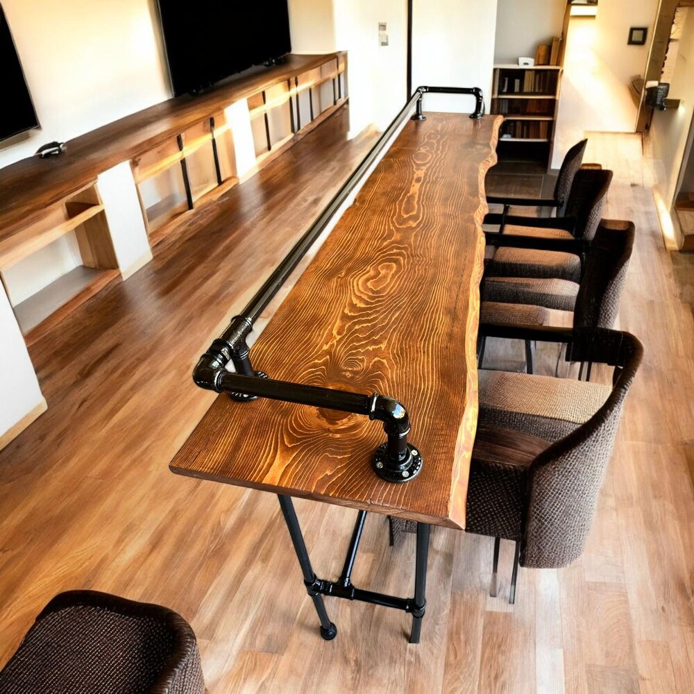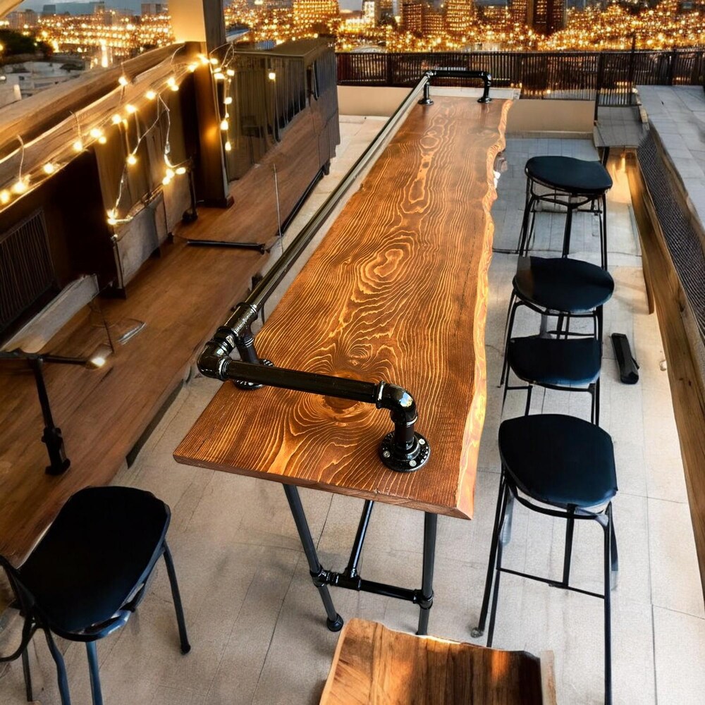 Handcrafted Wooden Bar Table: Made with high-quality wood, this table is built to last and offers a timeless appeal. The live edge design enhances the natural beauty of the wood, making each piece unique.