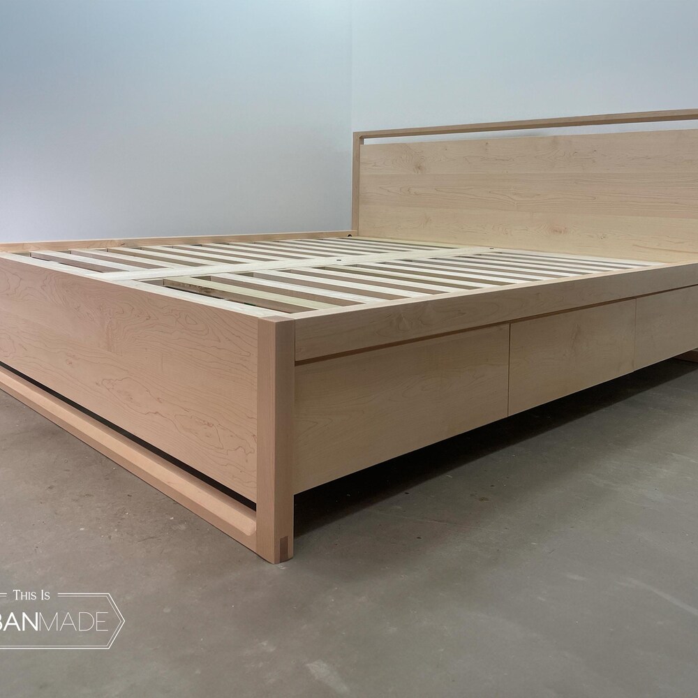Wooden Maple Platform Storage Bed with Drawers, Non toxic furniture, Solid maple bed frame, wood platform bed frame, Wooden bedroom set