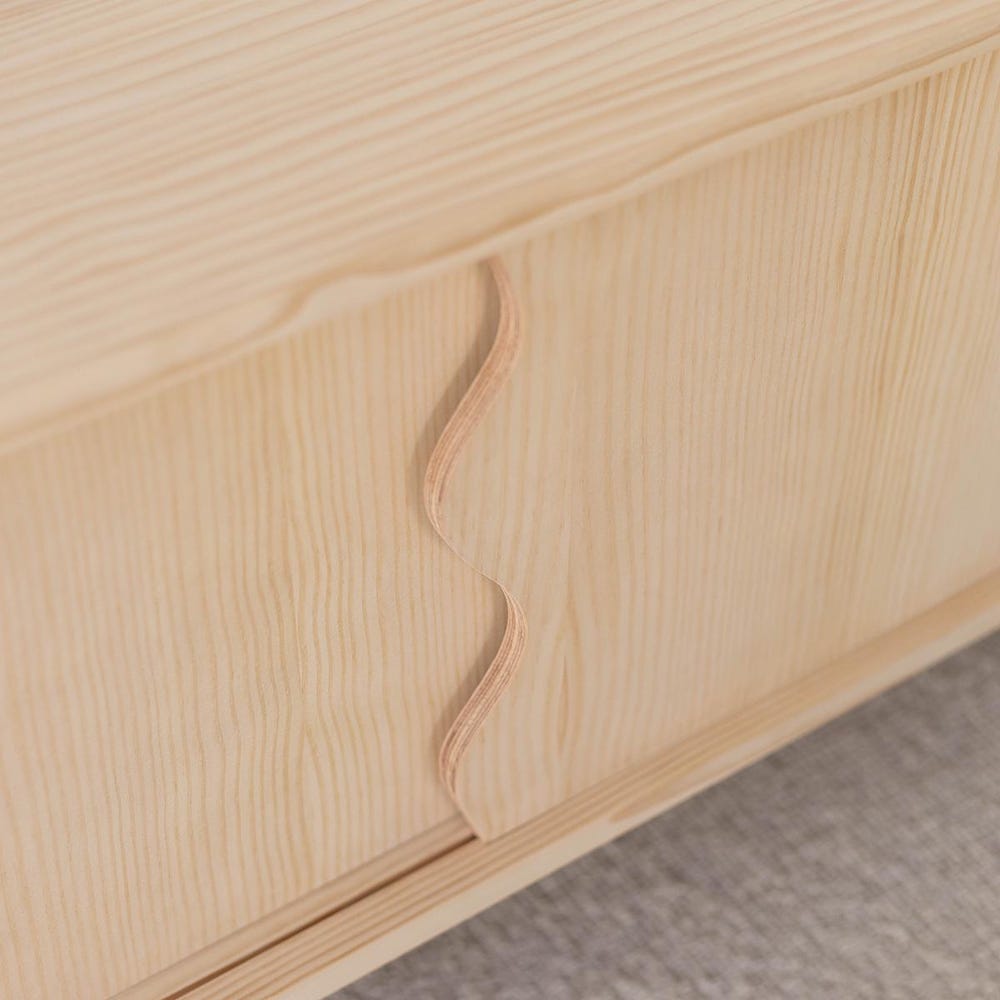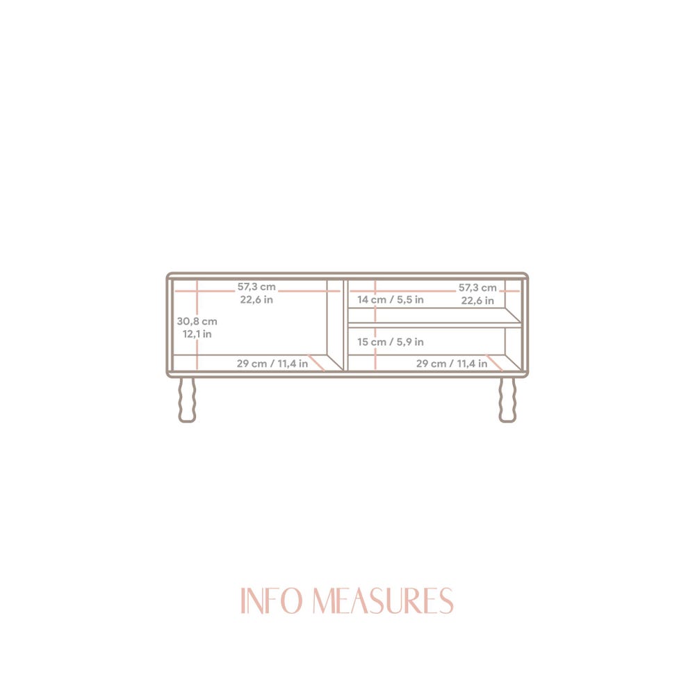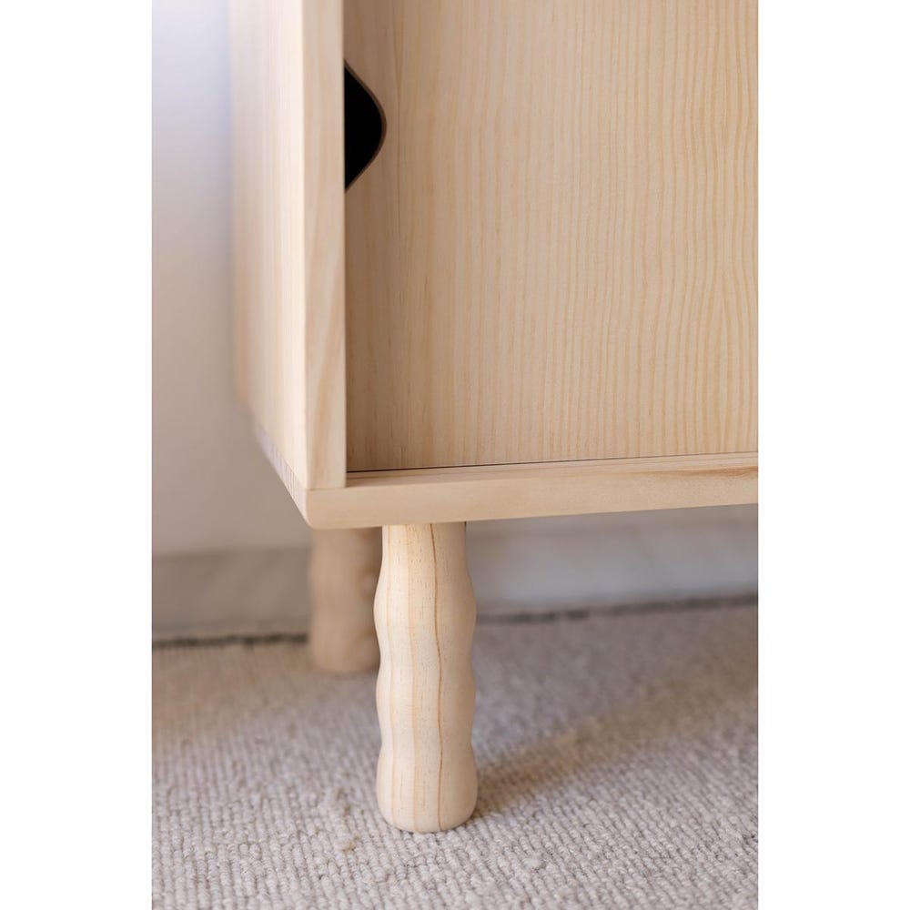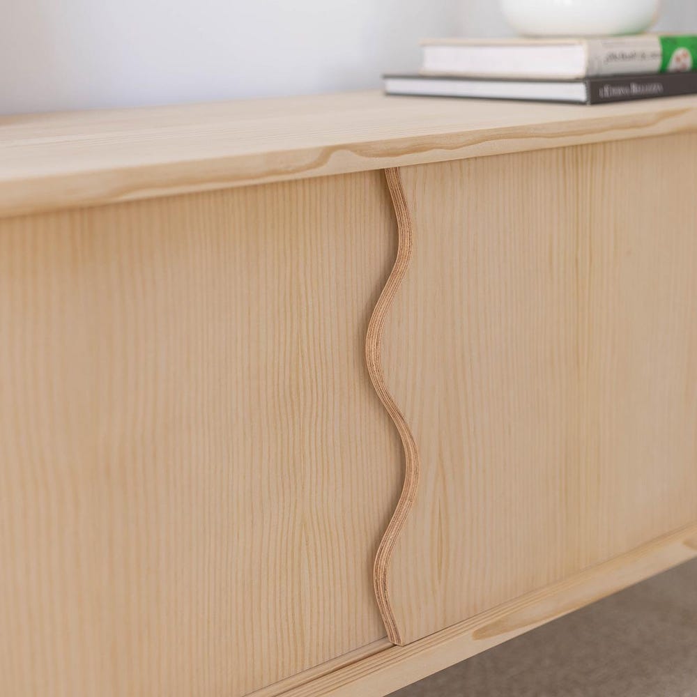 We fuse wood with organic and rounded shapes to create spaces with character. A multimedia piece of furniture that blends into any living room and any style of decoration. Its two sliding doors with rounded curves and its distinctive legs make it the true protagonist of the living room.