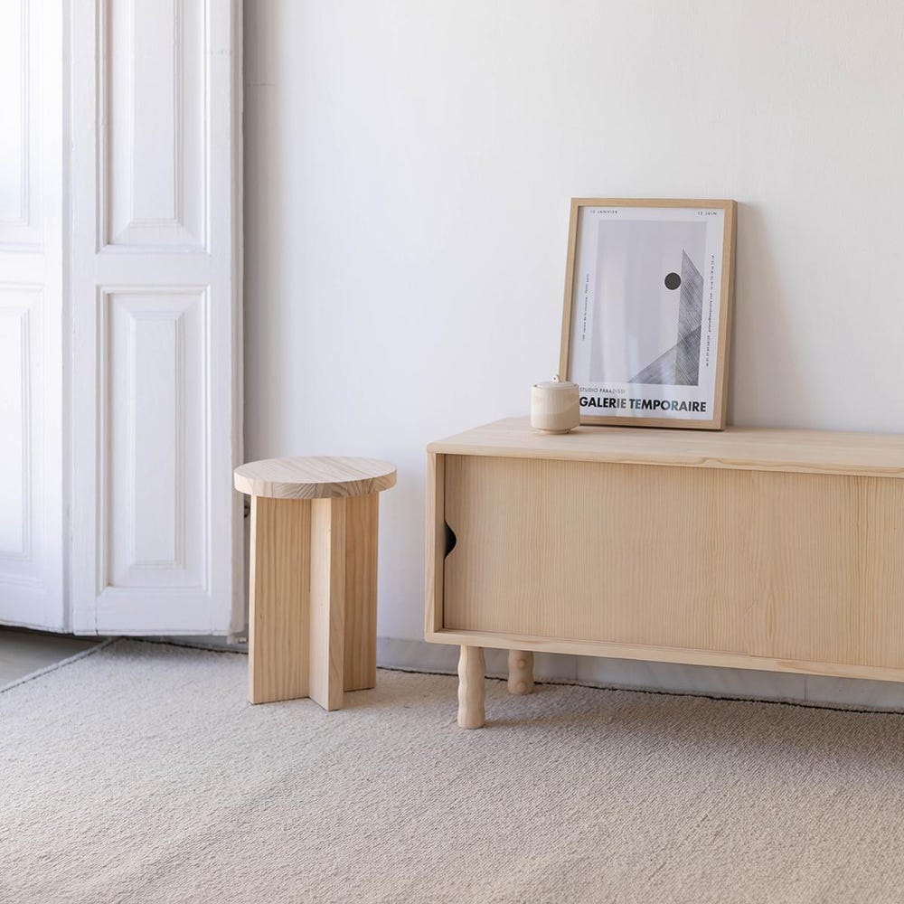 Solid wood media console, handcrafted from natural solid pine wood with PEFC certification for sustainability and durability. This TV cabinet features sliding wooden doors and a simple line design that perfectly combines Scandinavian style with a Mediterranean essence. Add a natural, warm and welcoming look to your living room! *Finish: It can be purchased unvarnished […]