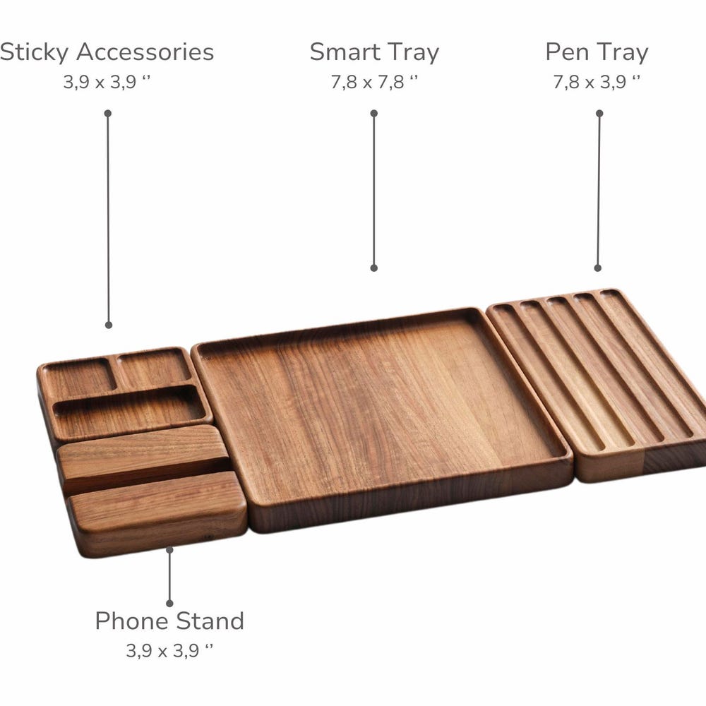 Smart Tray (7.8″ x 7.8″ / 20cm x 20cm): A multipurpose square tray that fits neatly on any desk or shelf. Great for holding sticky notes, small notepads, or a phone, this tray provides easy access to your essentials. For any customization and questions, please write to us.Please message first for any personalization and customization