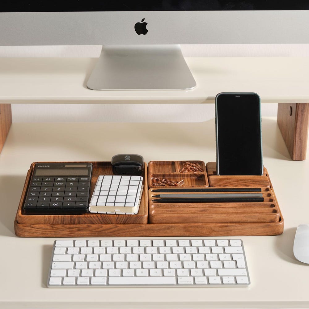 Wooden Note Tray, Cathch All Tray, Minimalist Desk Organizer for Modern Offices, Unique Handmade Gift for Workspace Storage & Decor, Gift