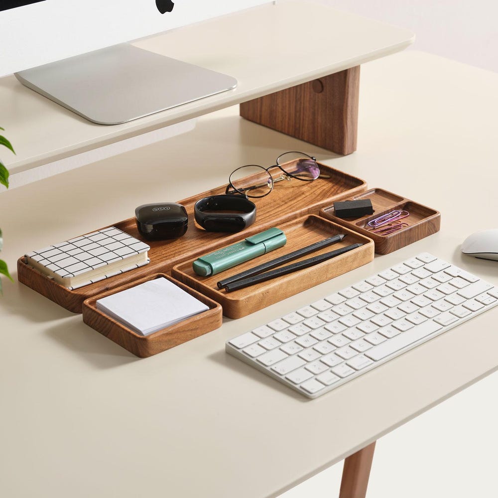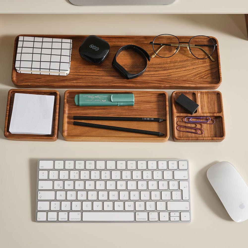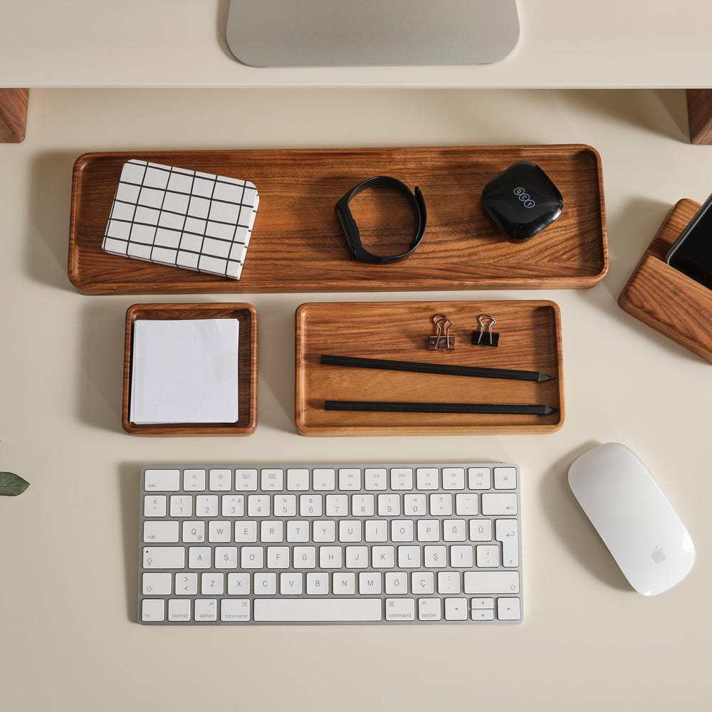Wooden Note Tray, Cathch All Tray, Minimalist Desk Organizer for Modern Offices, Unique Handmade Gift for Workspace Storage & Decor, Gift
