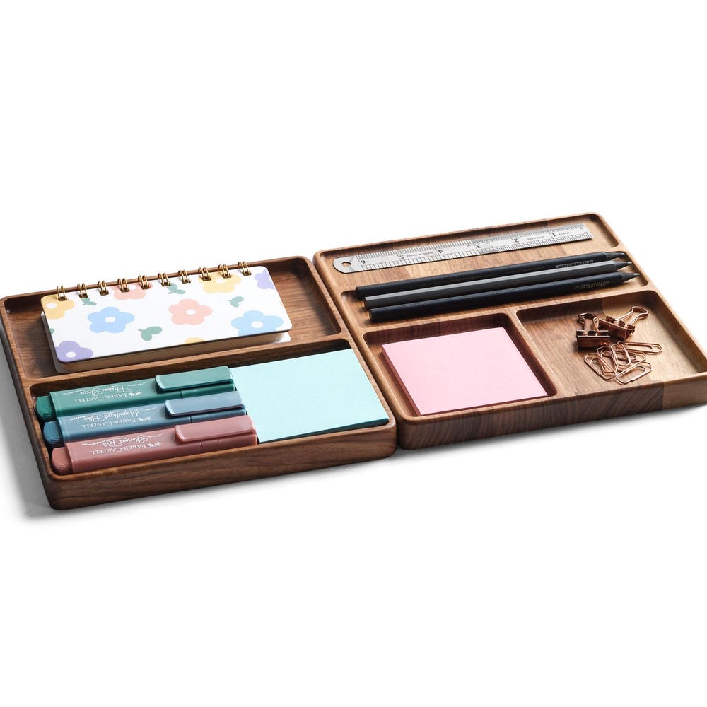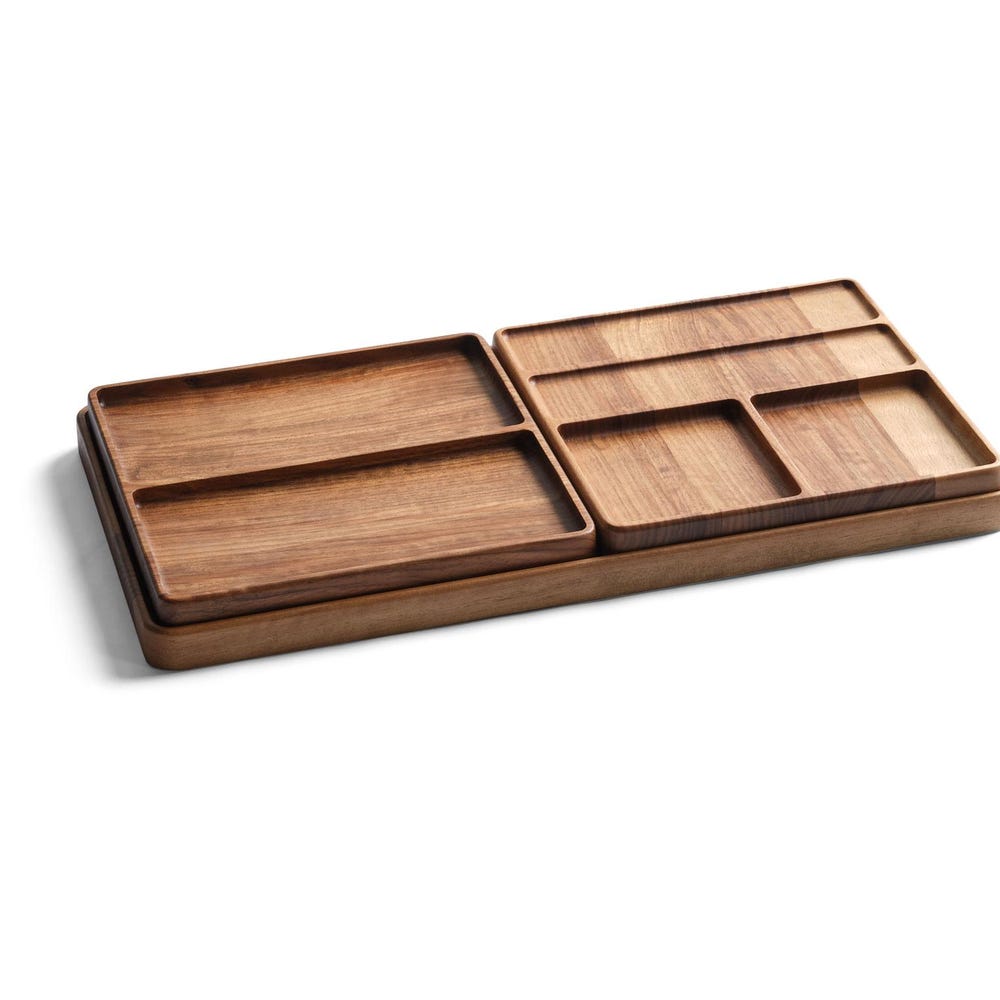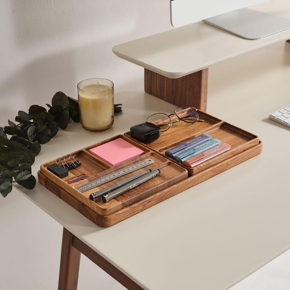This set of two trays is ideal for creating a paired organizer setup. Use one for desk accessories and the other for personal items like watches or jewelry.