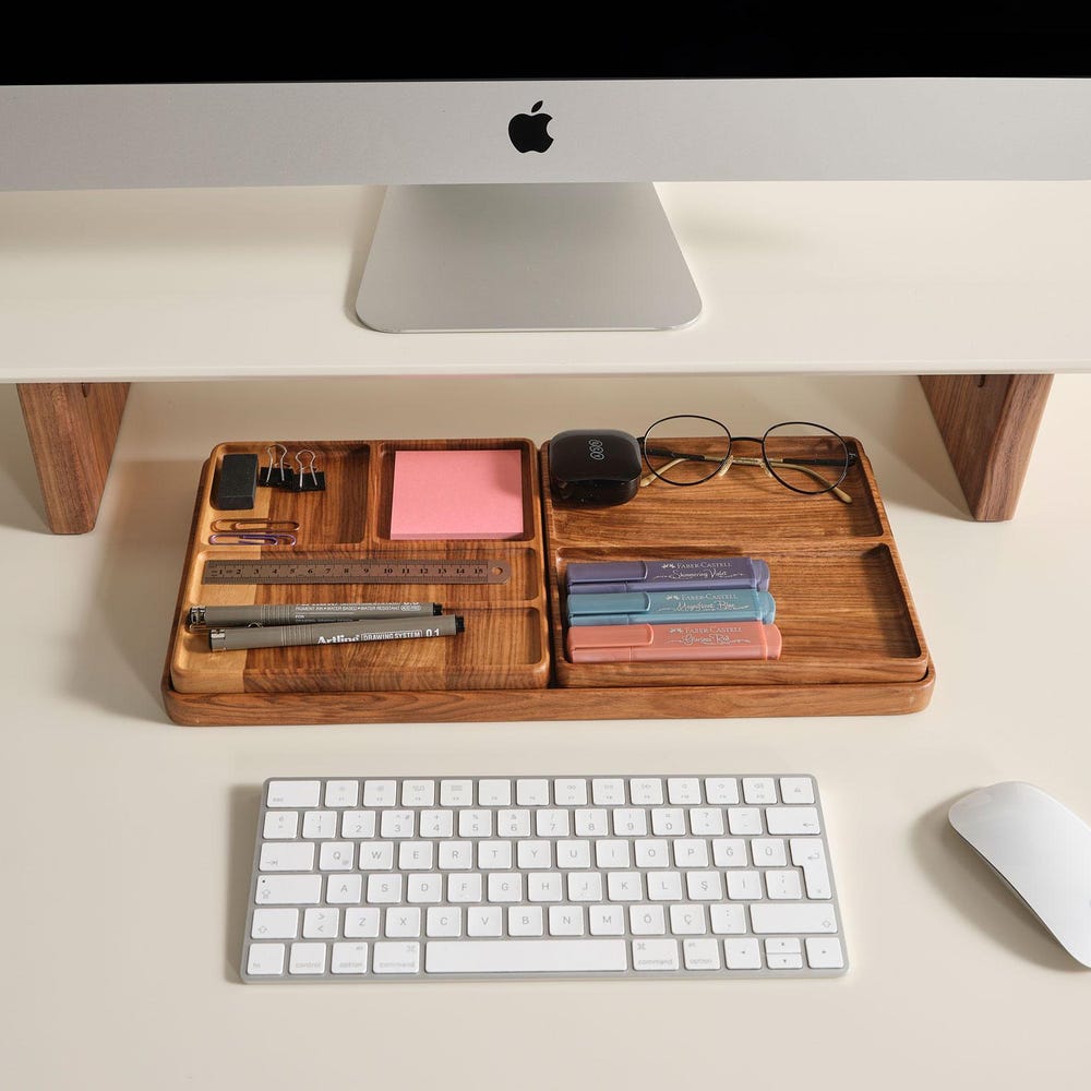 Wooden Note Tray, Cathch All Tray, Minimalist Desk Organizer for Modern Offices, Unique Handmade Gift for Workspace Storage & Decor, Gift
