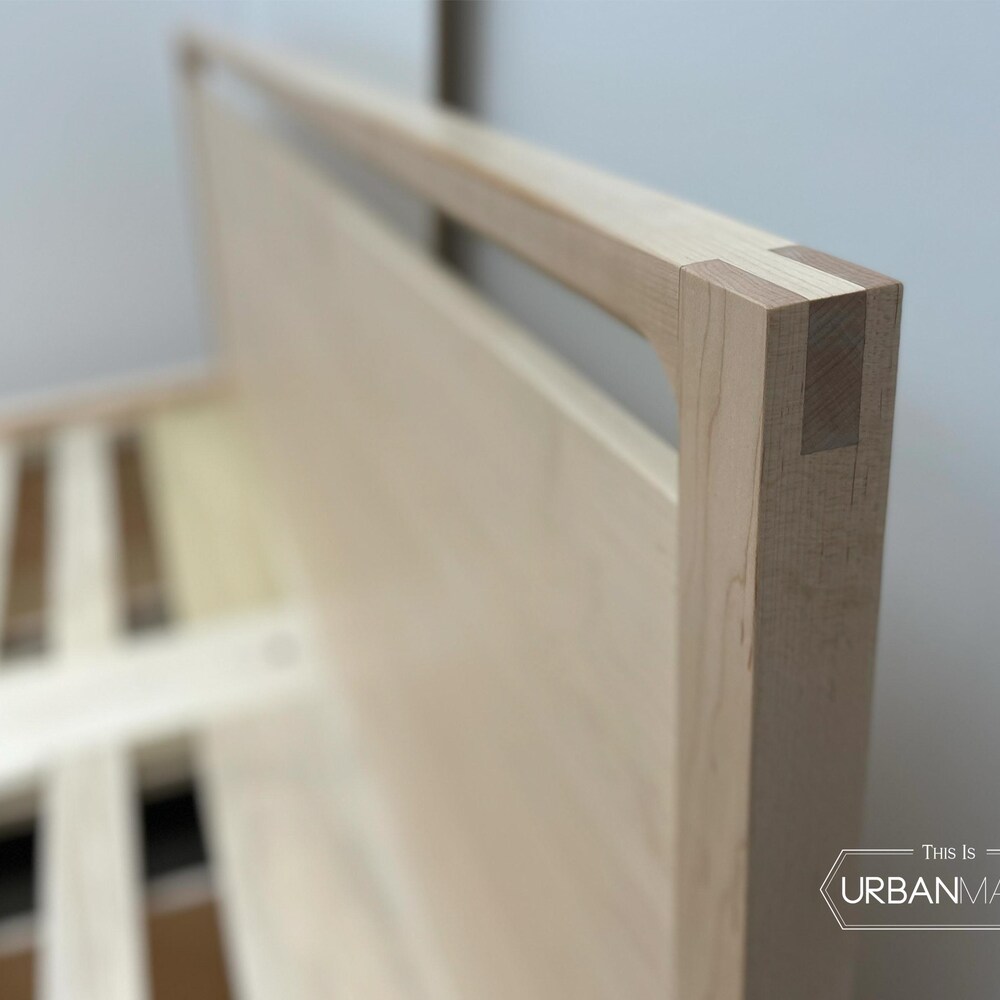 Handcrafted with non-toxic responsibly sourced materials in Seattle, WA to be a lifetime purchase. The Alki Bed is sleek, and efficient, with exposed bridal joints, and an optional slanted headboard.
