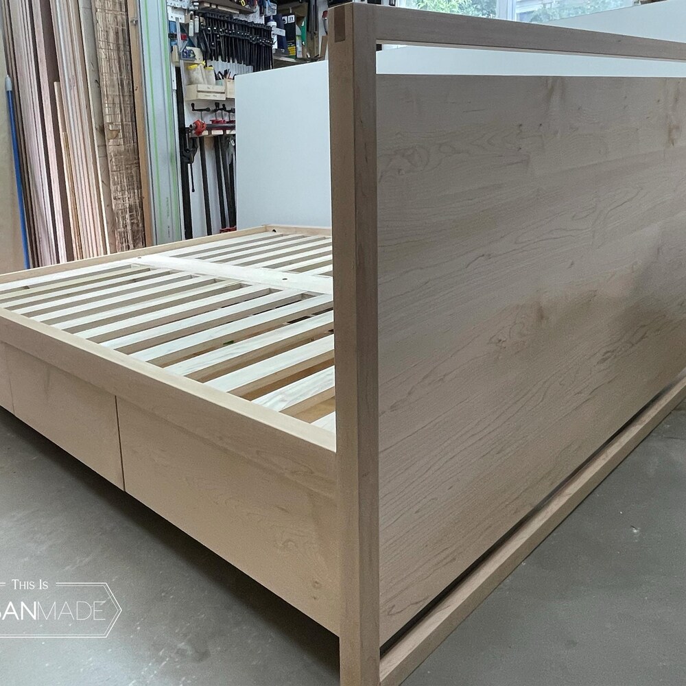 Wooden Platform Storage Bed with Drawers, Non toxic furniture, Solid maple bed frame, wood platform bed frame, Wooden bedroom set
