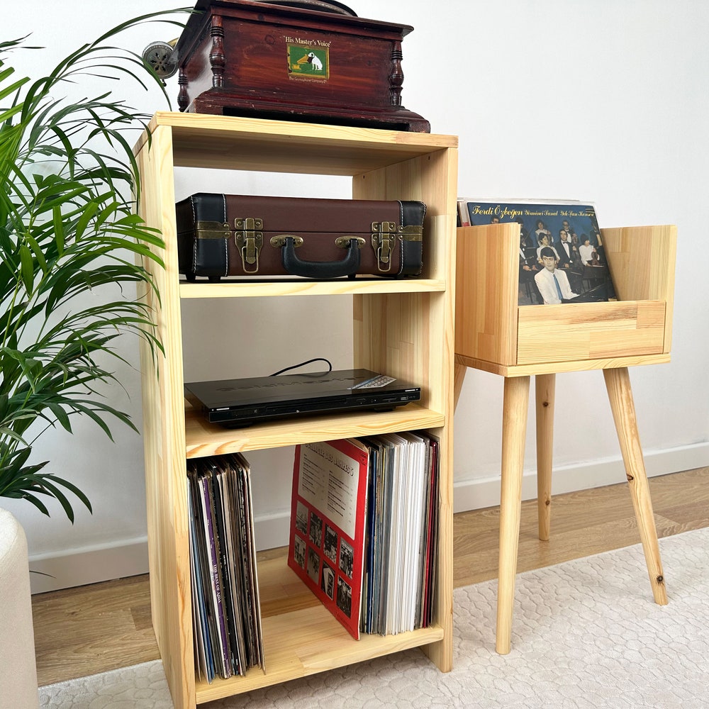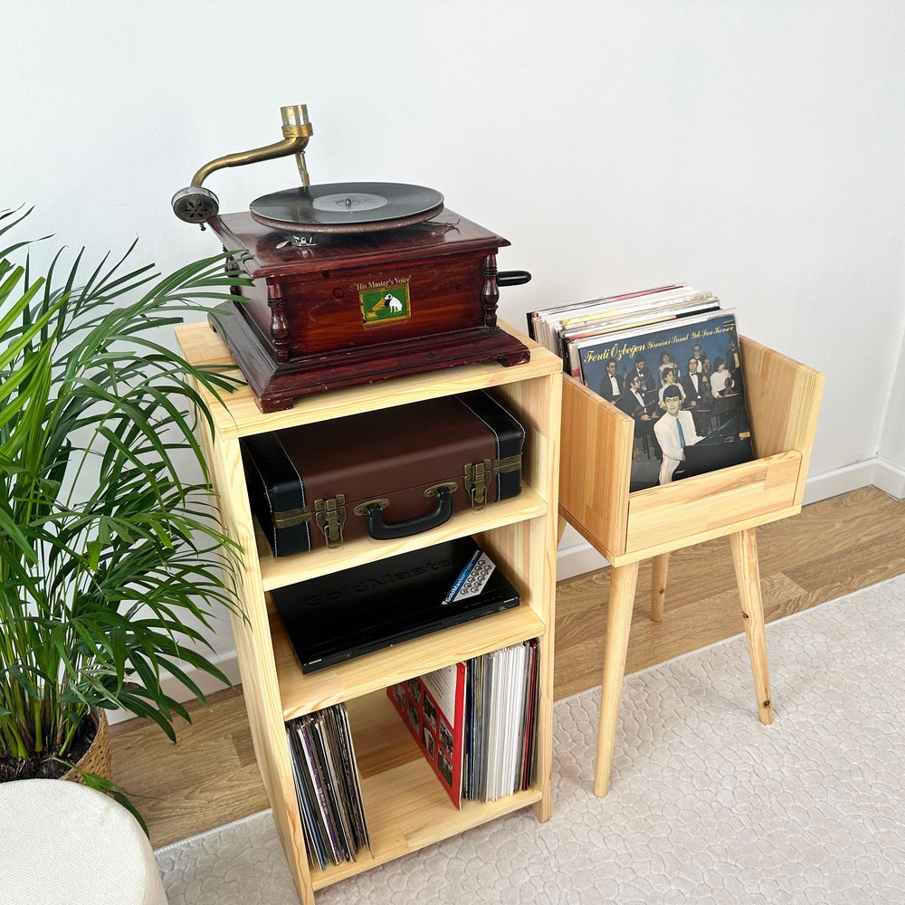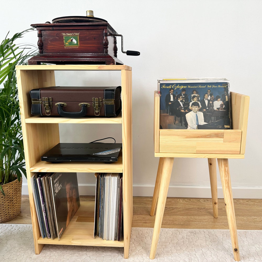 Wooden Record Player Stand, Vinyl Console, Vinyl Record Console, Dual set record player and vinyl console