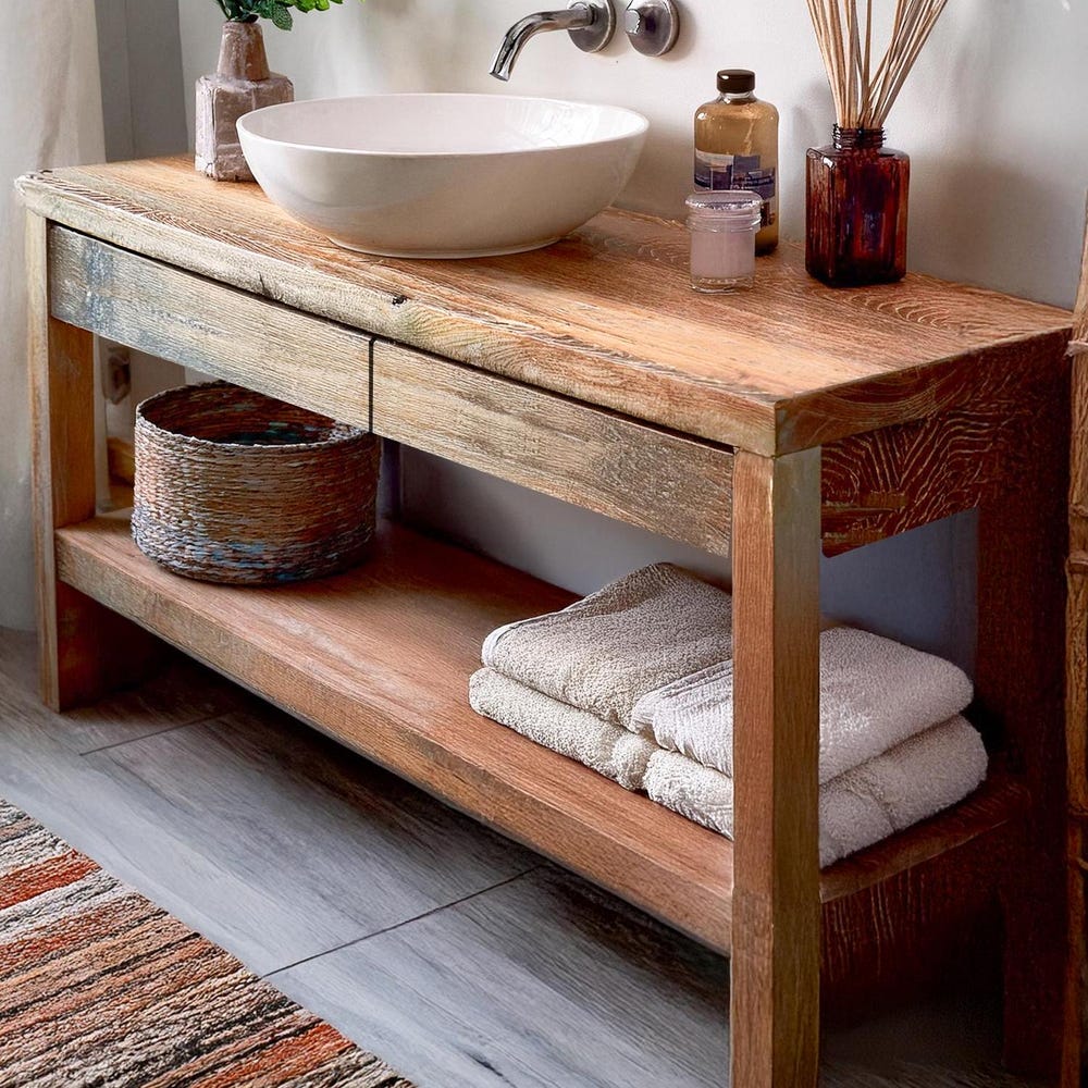 Transform your bathroom into a serene retreat with our handcrafted rustic bathroom vanity. Made from premium, sustainable wood.