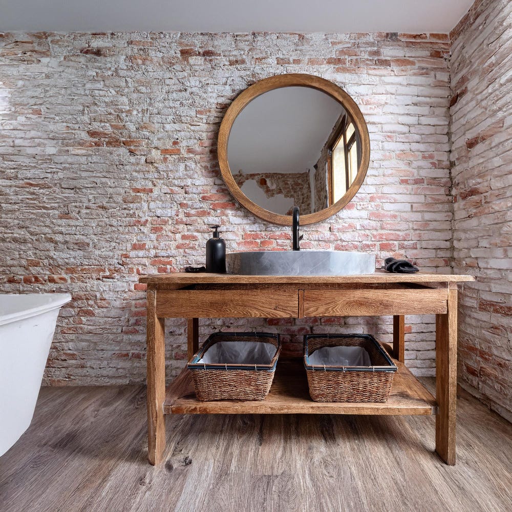 The weathered, distressed finish evokes the beauty of nature, giving your bathroom a warm and welcoming ambiance.