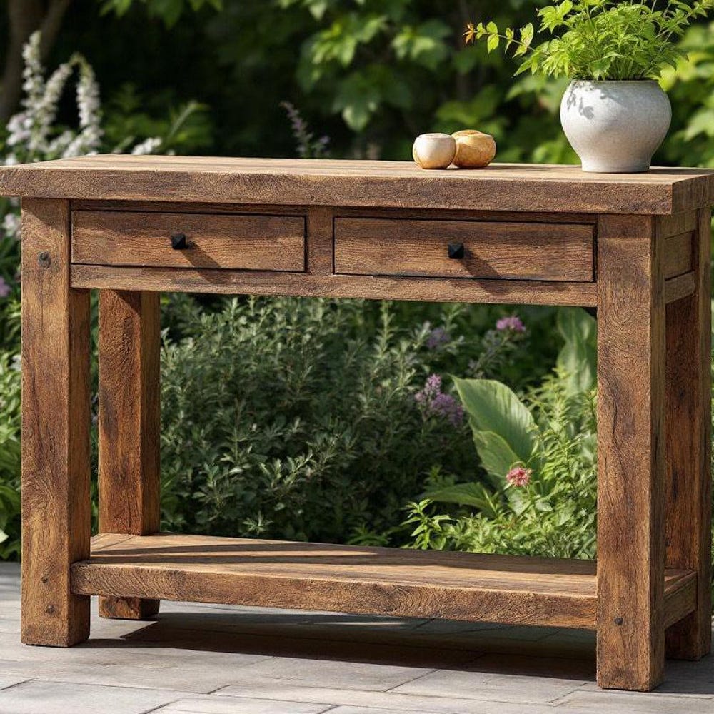 This rustic console table is the perfect blend of functionality and aesthetics. Whether you use it as an accent piece, a display surface, or extra storage, it will elevate the ambiance of your space with its authentic, rustic appeal.