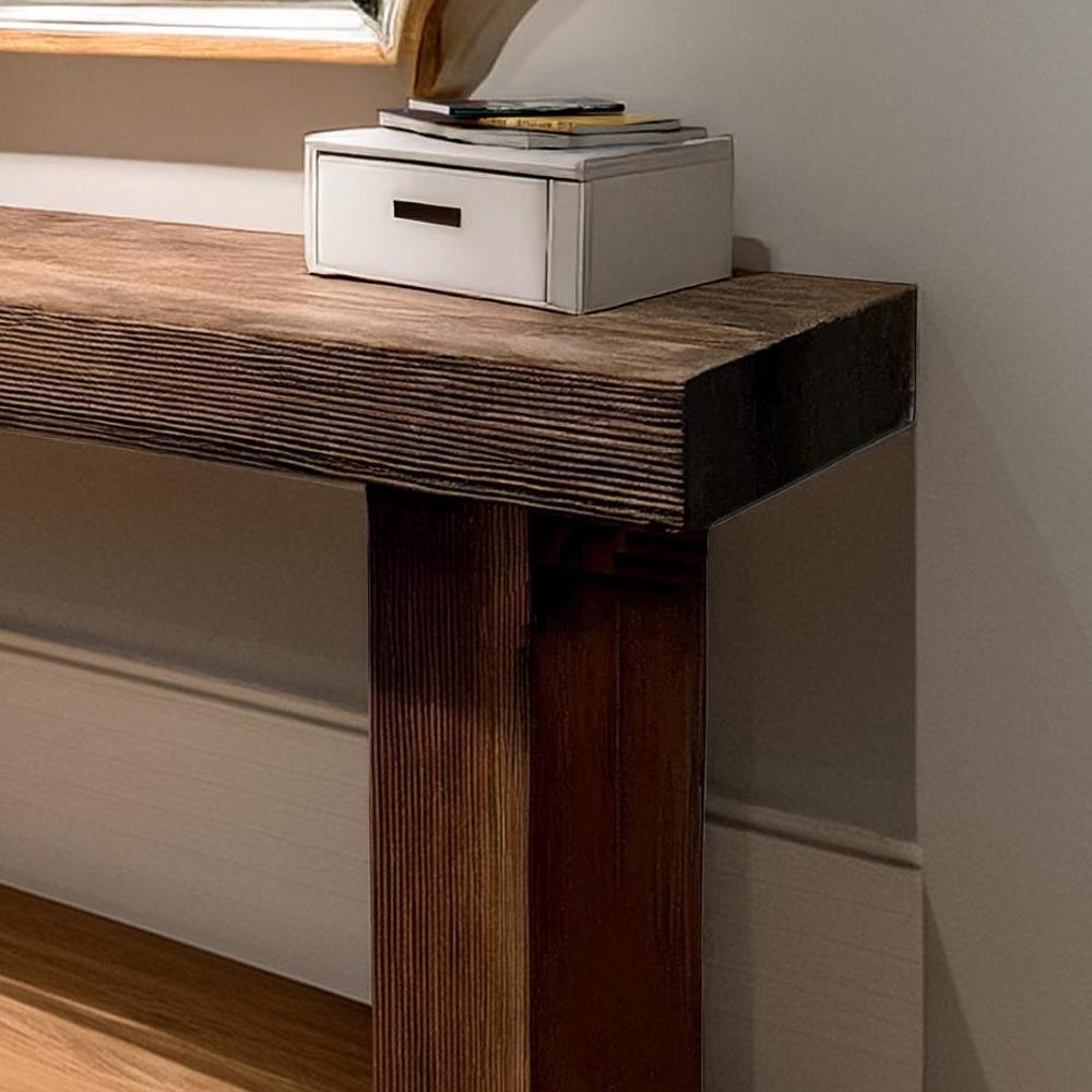 This rustic console table is the perfect blend of functionality and aesthetics. Whether you use it as an accent piece, a display surface, or extra storage, it will elevate the ambiance of your space with its authentic, rustic appeal.