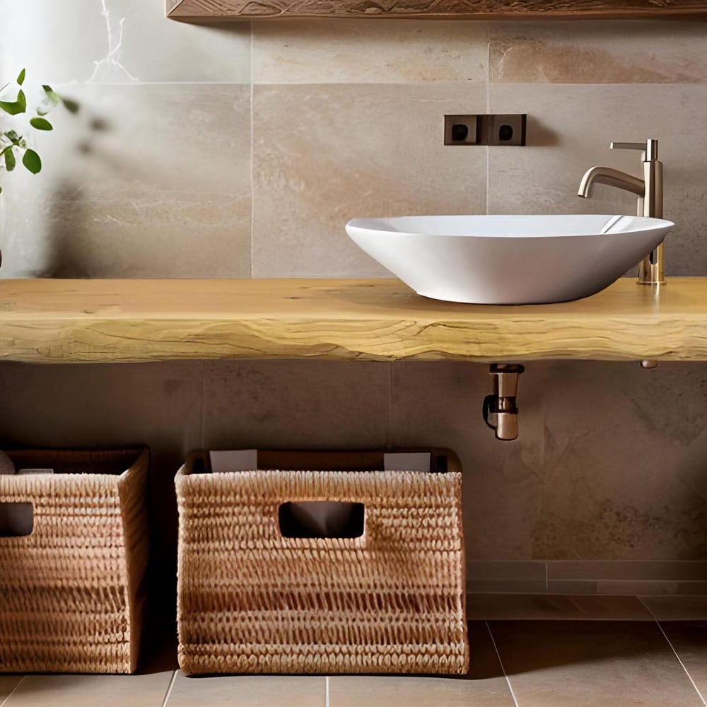 Transform your bathroom into a rustic haven with our handcrafted bathroom vanity. Made from solid wood, this unique piece features natural edges and a rich texture, ensuring that no two vanities are alike. Perfect for farmhouse decor, it combines style with functionality, providing a stunning centerpiece for your space. Ideal for those seeking both aesthetic appeal and durability