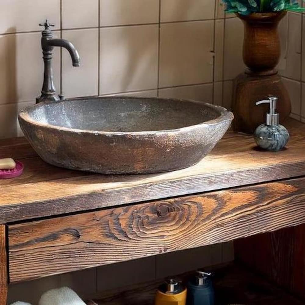 Wooden Rustic Style handmade bathroom vanity live edge solid wood cabinet sink table counter top farmhouse home decor furniture handcrafted
