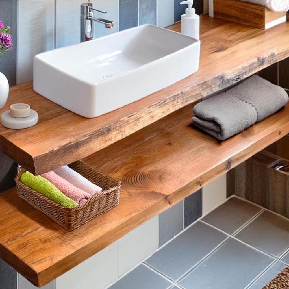 Wooden Rustic Style handmade bathroom vanity live edge solid wood floating cabinet sink table counter top farmhouse home decor furniture handcrafted