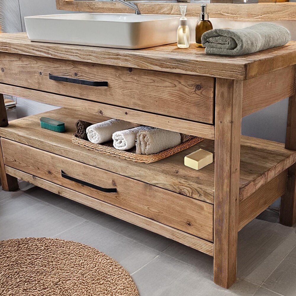 Elevate your bathroom’s aesthetic with our Handcrafted Rustic Wood Bathroom Vanity. Designed for both beauty and functionality, this vanity brings a touch of nature into your home.